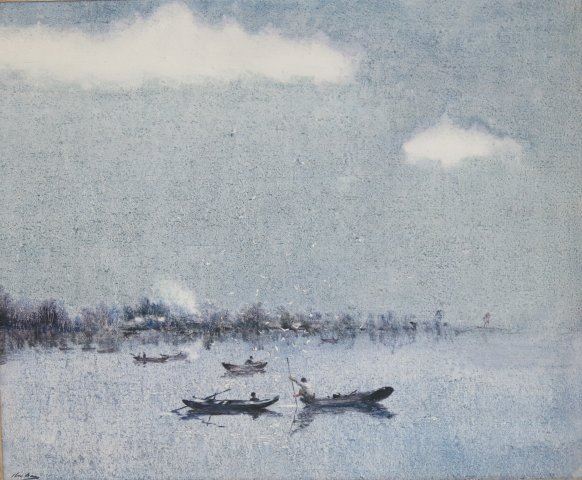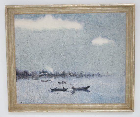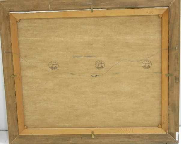 Oil on canvas. Framed. Signed lower left illegibly. 20th century. Approx. 33" x 40" without frame, 39" x 46" with frame.From a Monmouth, NJ estate. Damages to frame.