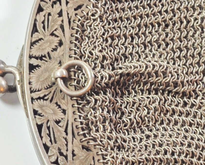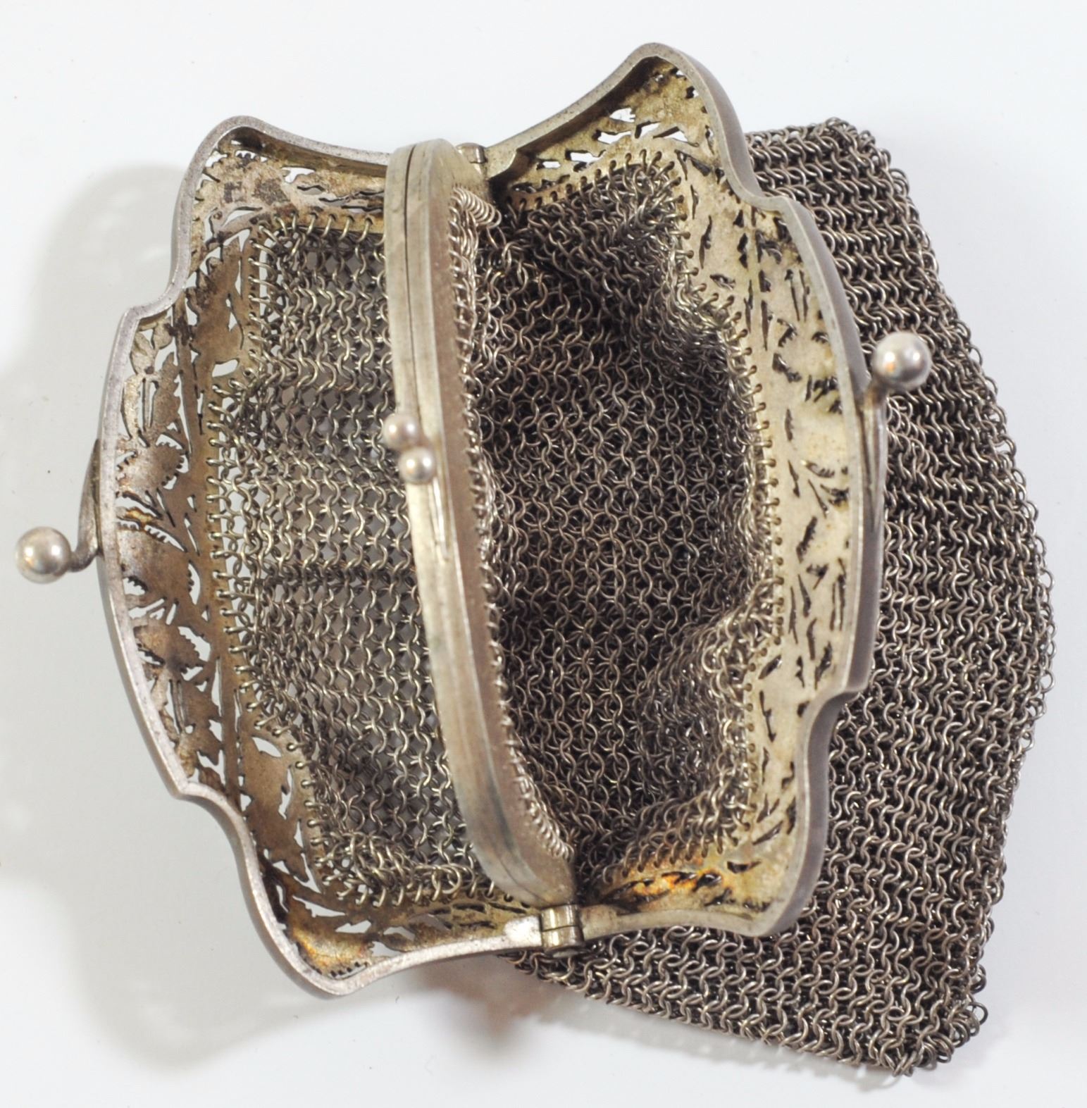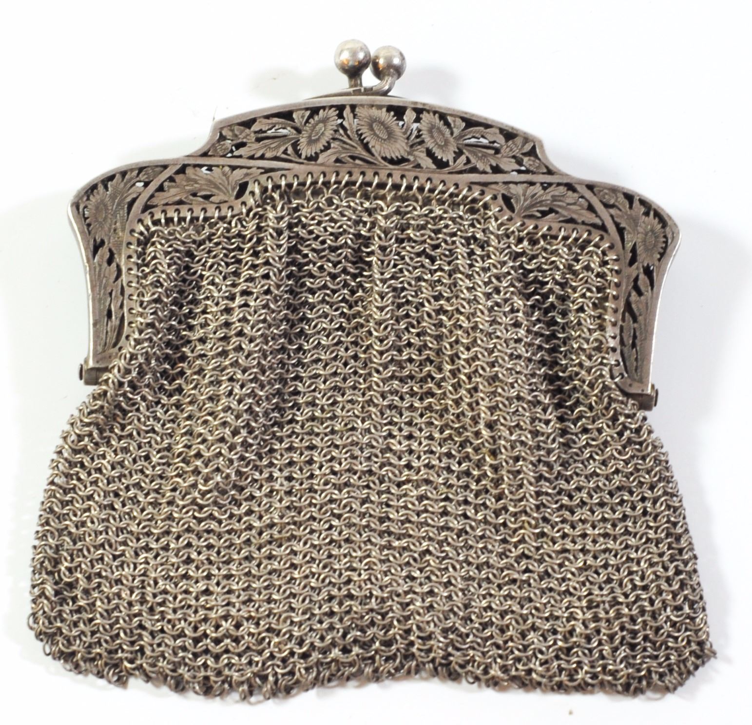 Fishnet coin wallet, Art Deco, silver, with a pierced pattern of flowers and leaves on framing, inside divided into four compartments. Signed, weight: 86 gm, dimensions: 8x8 cm.