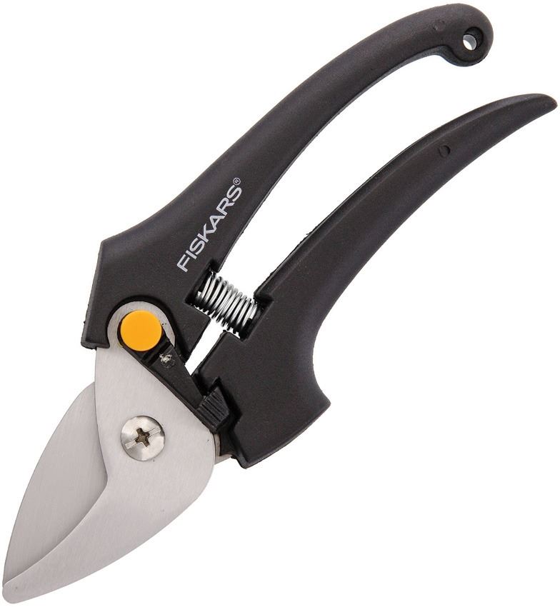 Overall: 7.125"; Blade: 2.5" | Stainless | Standard Edge; Handle: Black; Other Info: Bypass blade. Left or right hand use. Fibercomp handles with lanyard hole