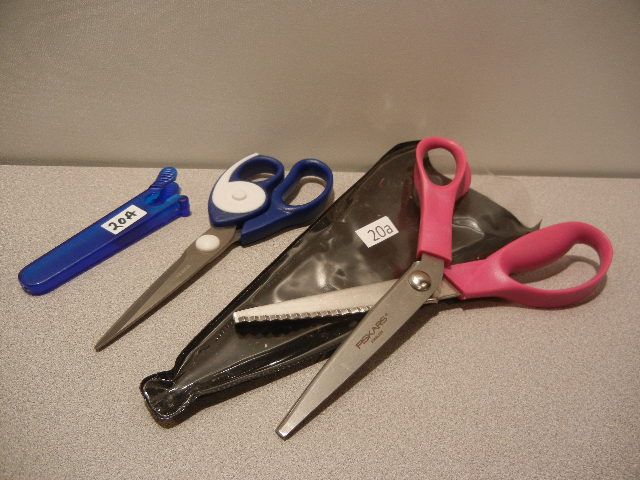 Fiskars SS Pinking Shears, Scissors w/tape meas. Built in handle