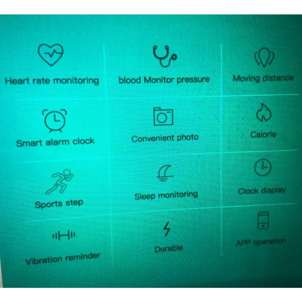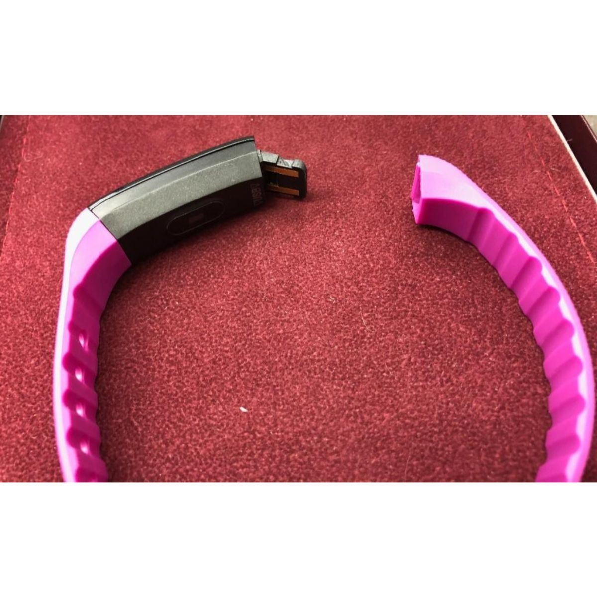 A Fitness Tracker Sports Health Smart Band Monitor. New In Box. This Fitness Smart Device Has The Time, Alarm, Heart Rate, Calorie Counter, Distance, Message Display and Call Alert, Pedometer, Sleep Monitor and Is Also Water Proof. Great For The Outdoor Enthusiast or Fitness Proactivist. View Photos For Further Details. Charger Cube Not Included.Â
