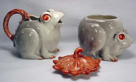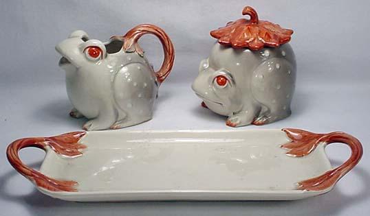 Fitz And Floyd Figural Frogs Sugar And Creamer Set W/ Tray