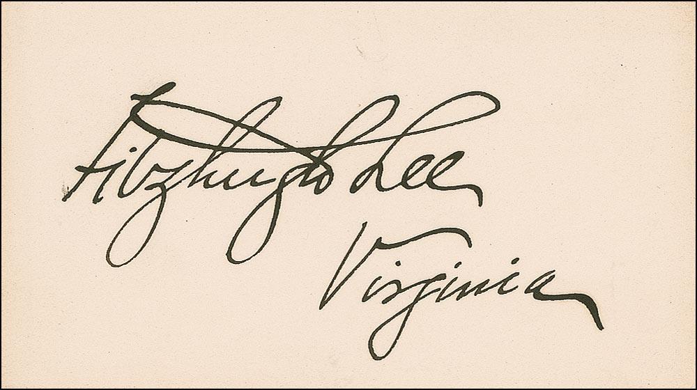 American soldier and politician (1835–1905), nephew of Robert E. Lee, who was a Confederate cavalry general during the Civil War and a general during the Spanish-American War. In the interval between the two wars, Lee served as Governor of Virginia and Consul General at Havana. Vintage ink signature, “Fitzhugh Lee, Virginia,” on an off-white 3.25 x 2 card. In fine condition.