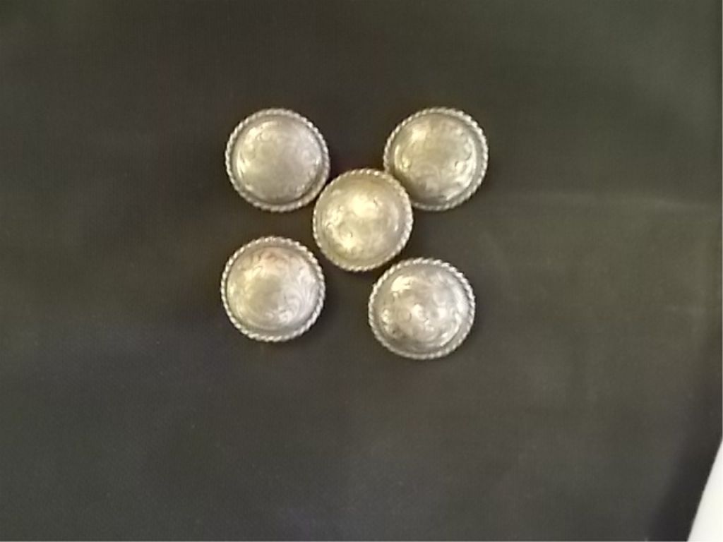 Sterling (tested) conchos for? …….A hat band, belt, tack? You name it, they all have Chicago screws on the reverse, just punch a hole in the leather and 95% of the work is done.