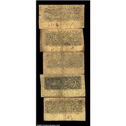 Five 1774 Maryland Notes. All are from the April 10 issue, and all grade right around Very Fine. The