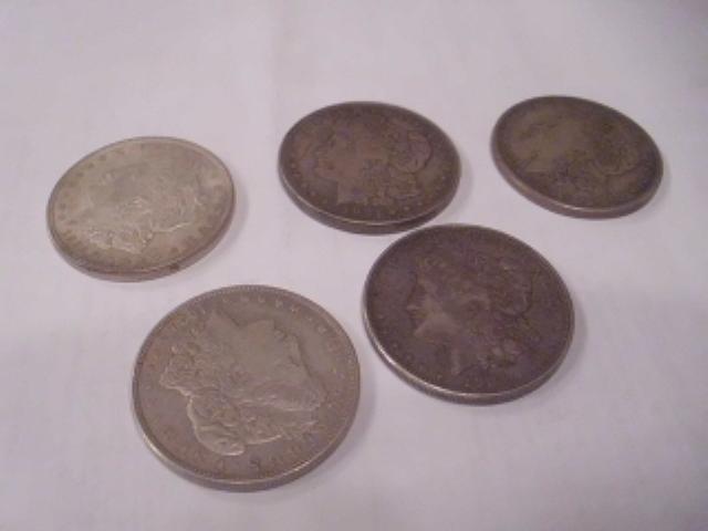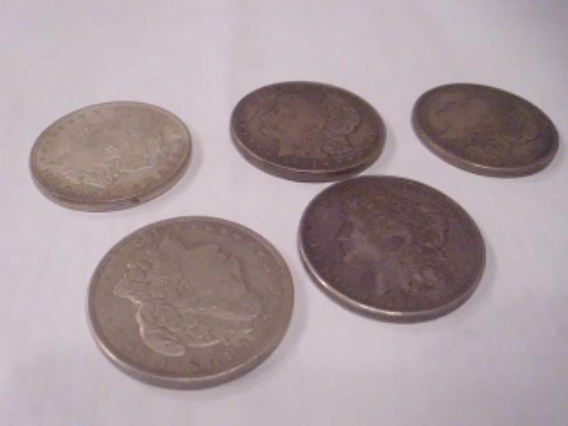 Five 1921 Silver Morgan Dollar Coins