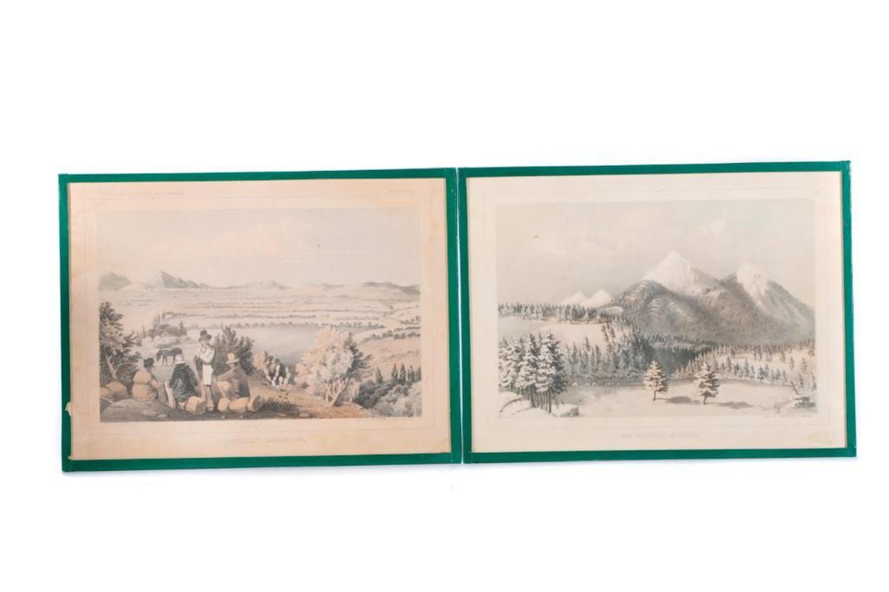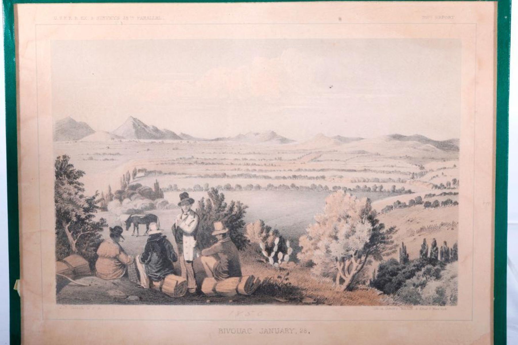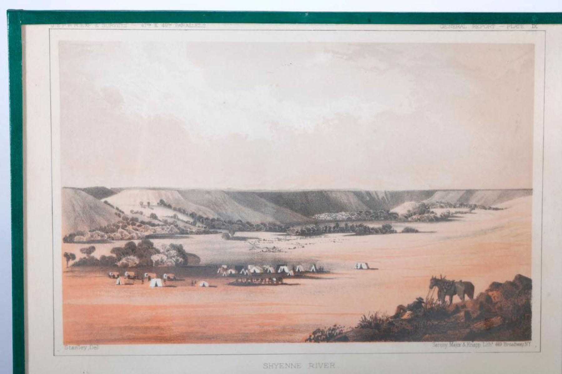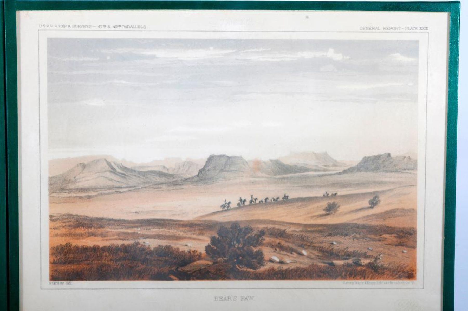 Five 19th century colored etchings of the American West measuring in the glass, 8 1/2 inches high x 11