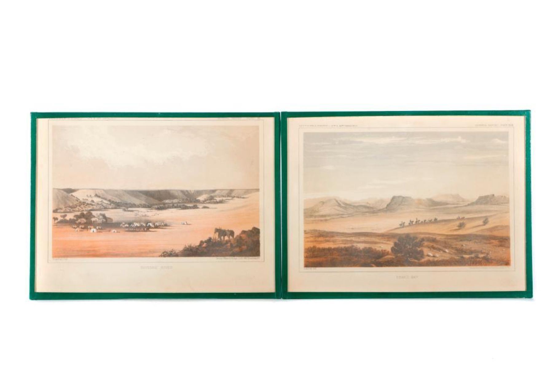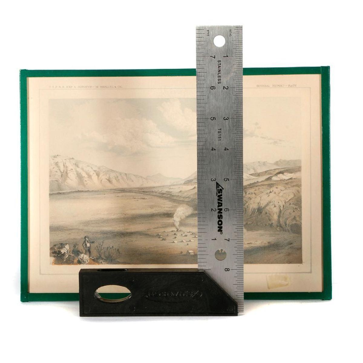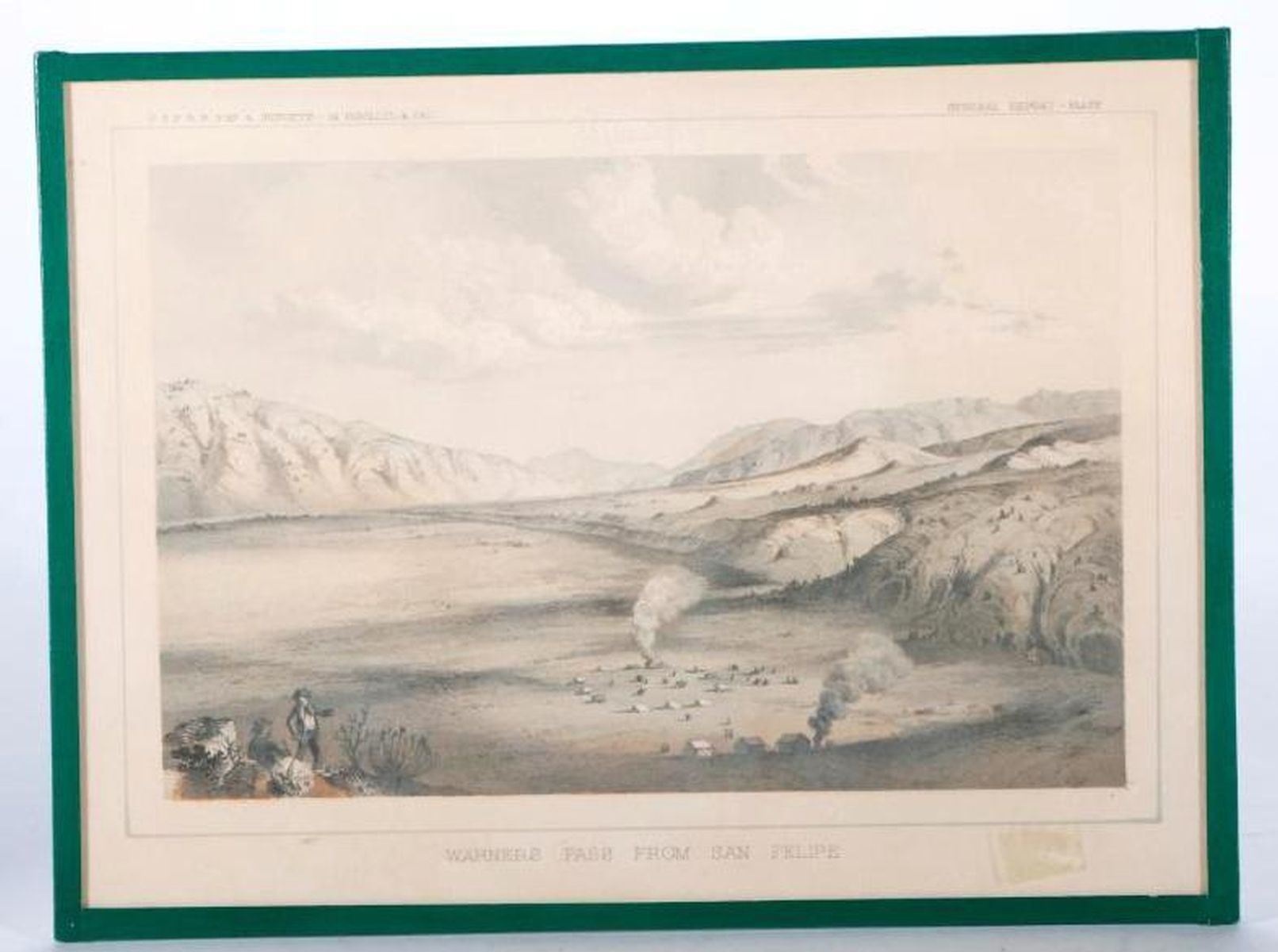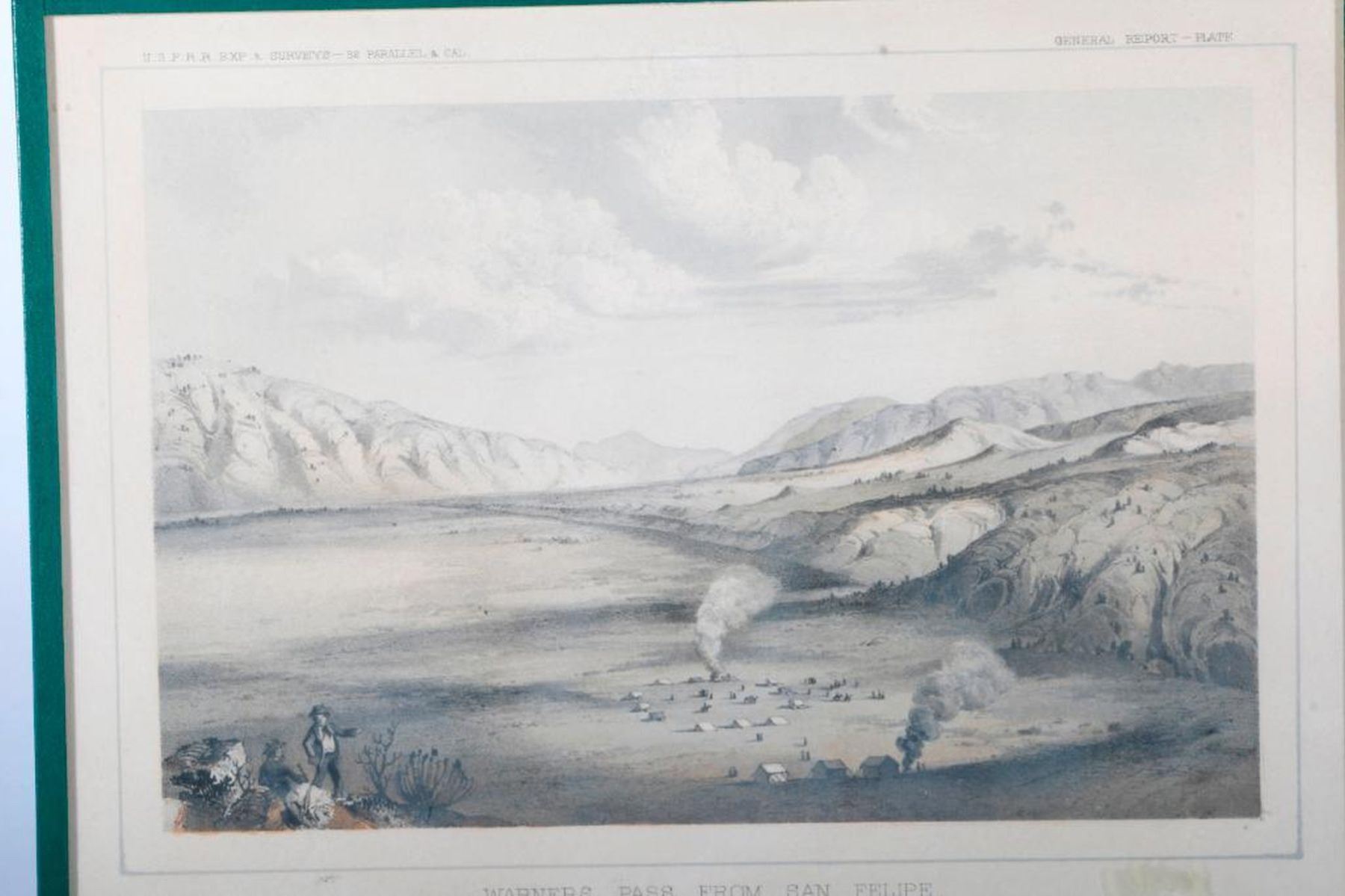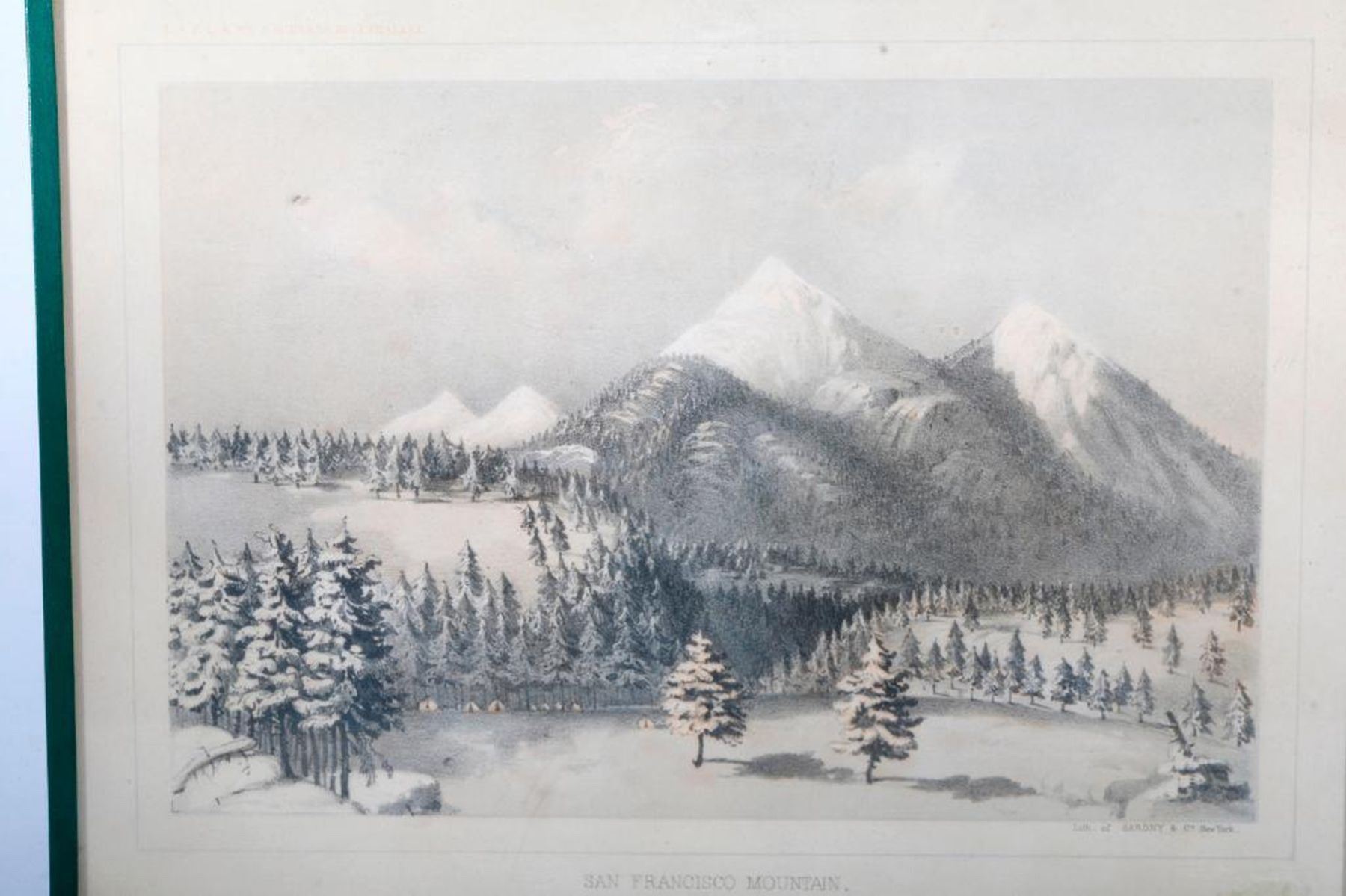 Five 19th century colored etchings of the American West measuring in the glass, 8 1/2 inches high x 11