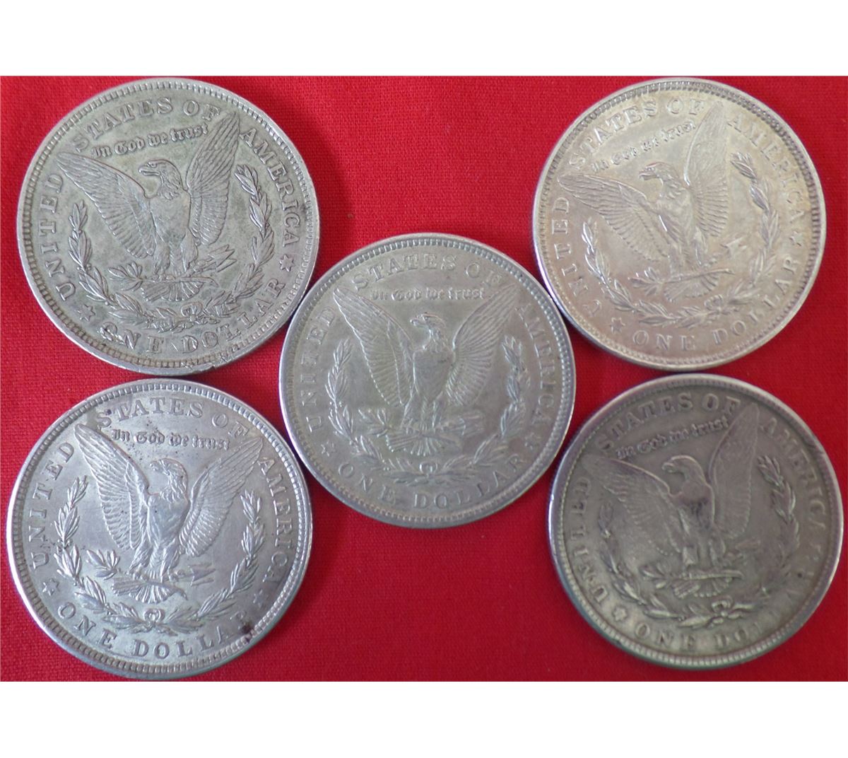 Five (5) Morgan Silver Dollars all dated 1921 in nice but circulated condition. See pictures. Shipping $14.50