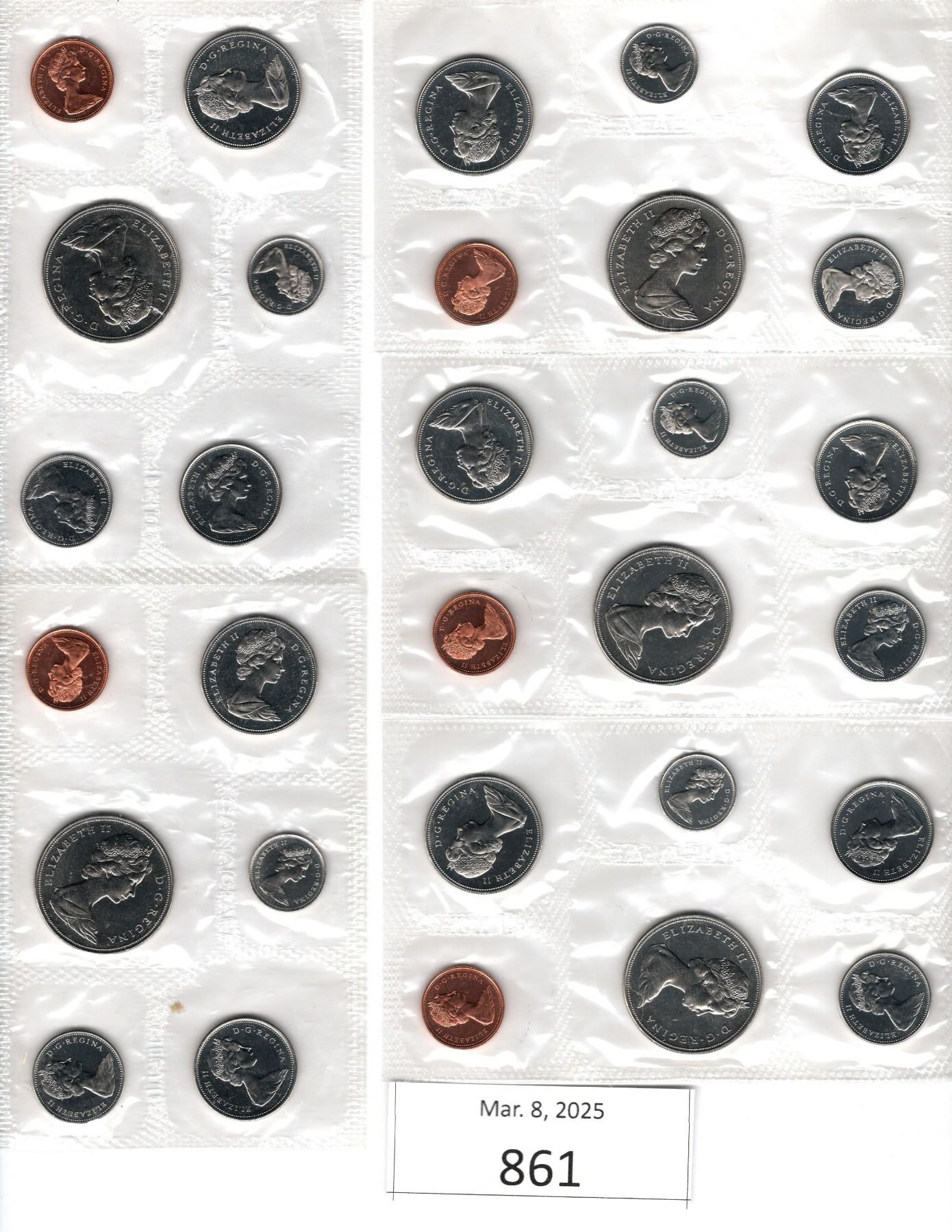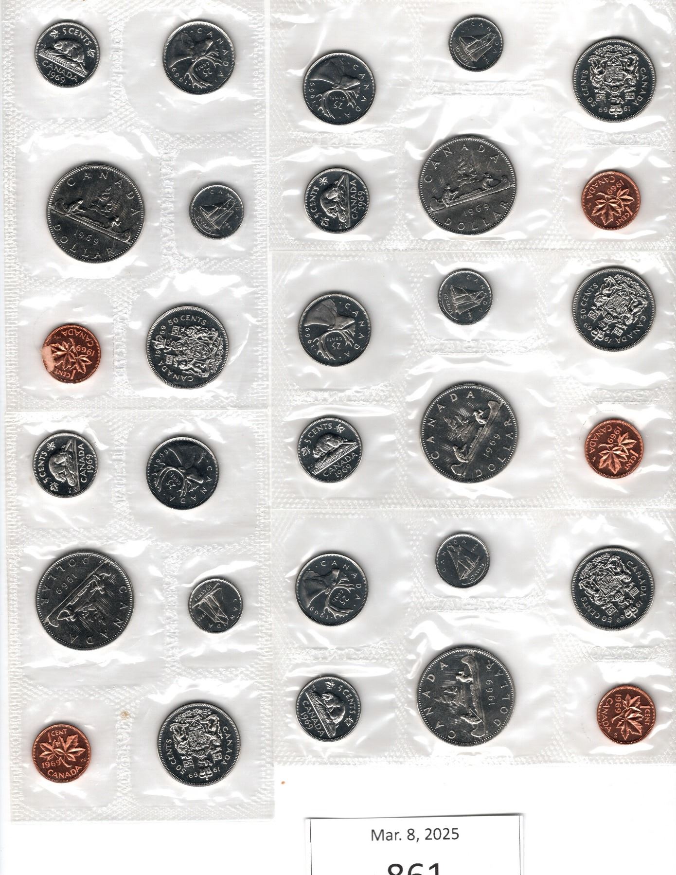 Five - 6 Coin Sets of 1969 Uncirculated Canadian Coins