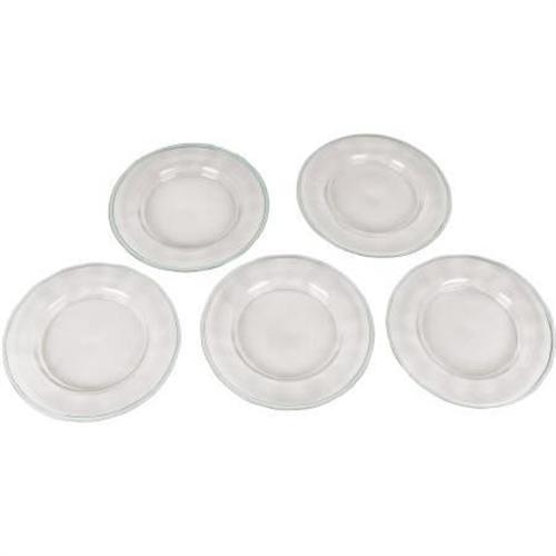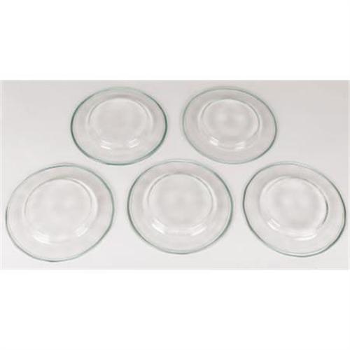 <B>Five American Glass Plates</B></I><BR>Steuben<BR>Twentieth Century<BR>Pale green<BR>Acid etch Fleur de Lis mark<BR>8.5 inches diameter<BR><BR><b>Shipping:</b> Requires 3rd Party Shipping (<a target="_blank" href="http://www.heritageauctions.com/common/shipping.php">view shipping information</a>)