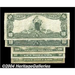 Five Birmingham and Mobile Nationals.Birmingham, AL - $10 1902 Date Back Fr. 616 The First NB Ch. #(S) 3185 VFBirmingham, AL - $5 1929 Ty. 2 The First NB Ch. # 3185 VG, wallet stainingBirmingham, AL - $10 1902 Plain Back Fr. 624 American-Traders NB Ch. # 7020 Very FineMobile, AL - $10 1929 Ty. 1 The Merchants NB Ch. # 13097 VFMobile, AL - $20 1929 Ty. 1 The American NB & TC Ch. # 13144 Fine. 5 notes <BR><BR><B>Important notice:</B> Heritage usually auctions material at the rate of 200-250 lots per hour. On some occasions eBay Live bid software or the Internet may not be able to keep up with the pace of the auction. We recommend placing a realistic absentee bid now as insurance to avoid disappointment. Occasionally the auctioneer may eliminate or reject an eBay Live bid, and the auctioneer may also reopen a lot after the close of the eBay live bidding (usually because we missed an audience bid), and may reject your bid even if it shows you as the winning bidder. By bidding via eBay Live, you agree that Heritage may award the lot to another bidder at its sole discretion under the circumstances described above or any other reasonable circumstances. Since eBay bids are not shown to us until we open the lot on the floor, we treat those bids just like floor bids. In most cases the floor responds before the eBay bid is presented to us, due to Internet lag time, so for consistency we have made it a policy that floor bids are always considered first over tie eBay live bids. Also please note that all Heritage lots purchased through eBay Live carry a 20% Buyer's Premium. Please make sure you read the Terms and Conditions before you bid. <BR><BR><B>IMPORTANT ANNOUNCEMENT ABOUT RESERVES:</B> Heritage now divulges all reserves on its web site 7 days before every auction. If you want to know whether the reserve on this lot has been met, and if not, what the reserve amount is, please visit this lot page on the HeritageCoin.com web site, or email: bid@HeritageGalleries.com