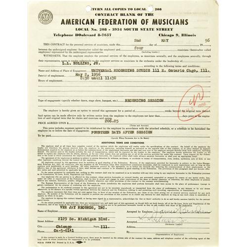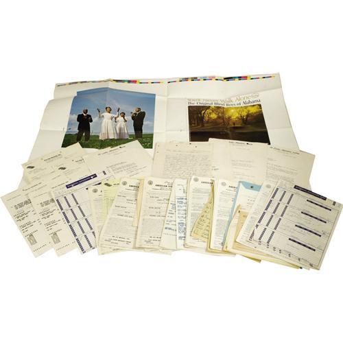 <B>Five Blind Boys of Alabama Document Archive.</B></I> A large selection of documents pertaining to the legendary Gospel group, including royalties statements, studio log sheets, assorted correspondence, and signed agreements dating from 1956 to 1959. In overall Fine to Very Fine condition.<BR><BR><b>Shipping:</b> Flat Material, Small (<a target="_blank" href="http://www.heritageauctions.com/common/shipping.php">view shipping information</a>)
