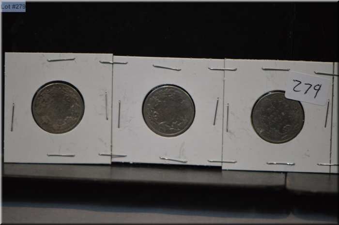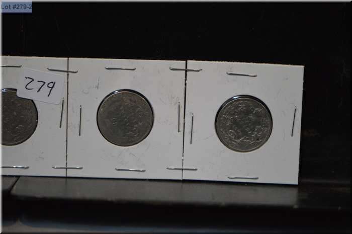 Five Canadian silver quarters