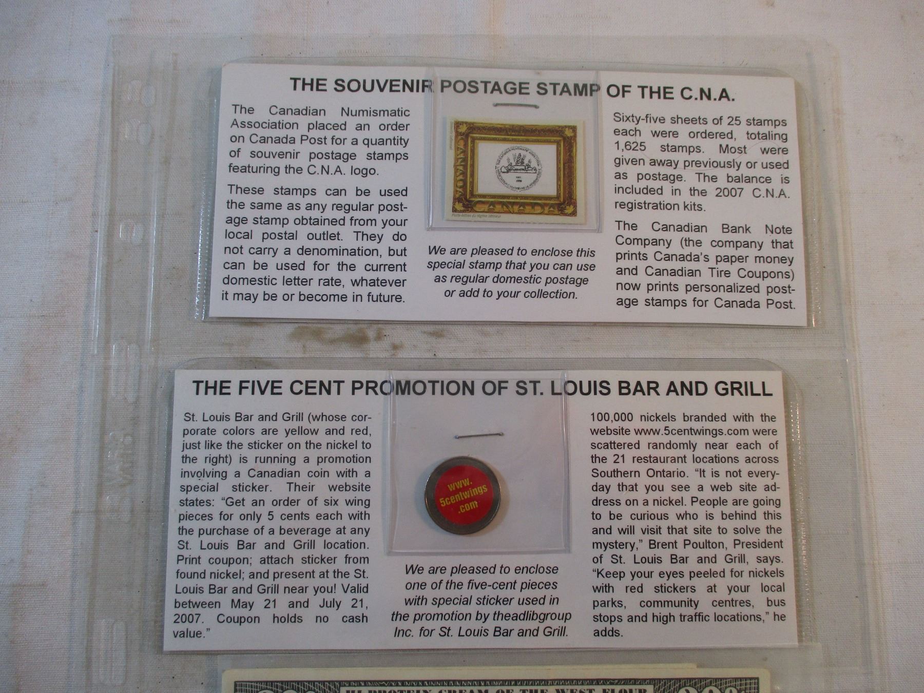 Five Cent Promotion Items (St Louis Bar and CNA Postage)