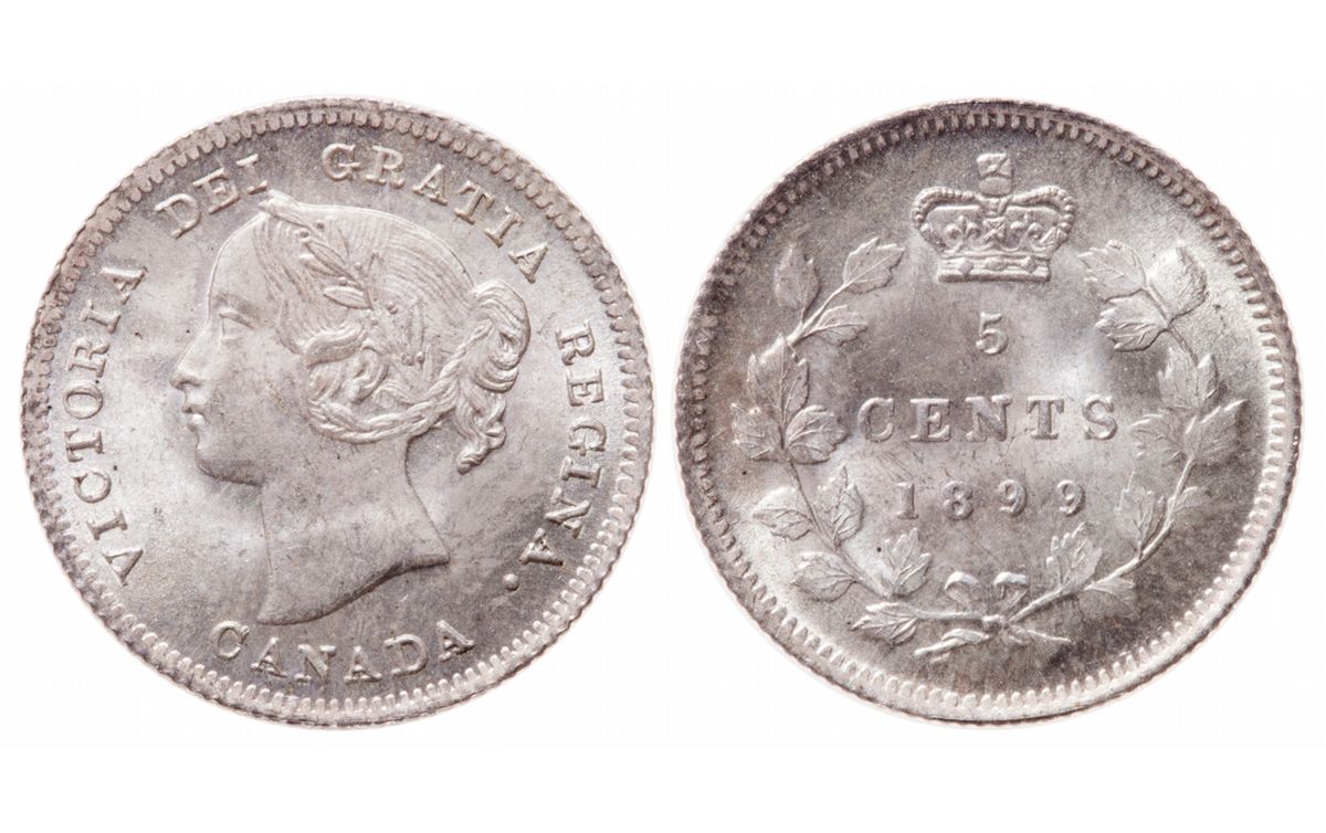 Five Cents. 1899. ICCS Mint State-66. Brilliant. Frosty satin fields. Only one example graded higher by ICCS.