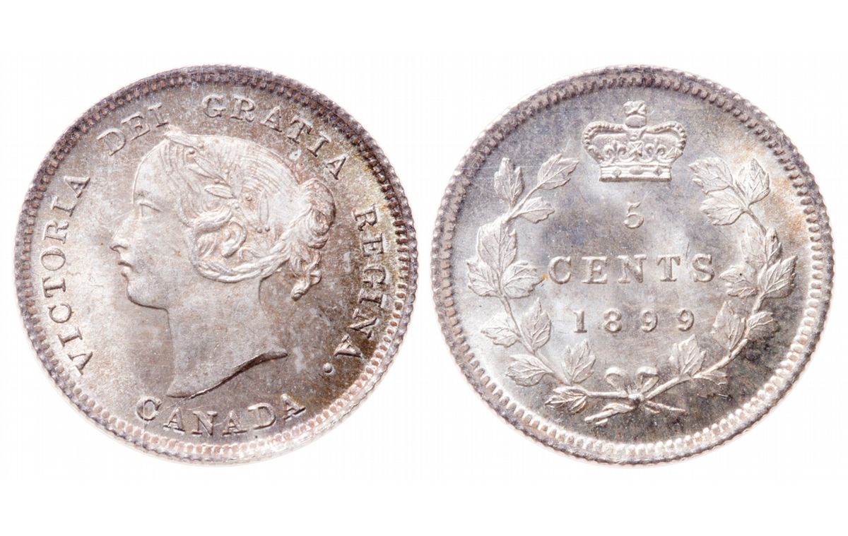 Five Cents. 1899. ICCS Mint State-66. Very light gold toning over full luster. Only one example graded higher by ICCS.