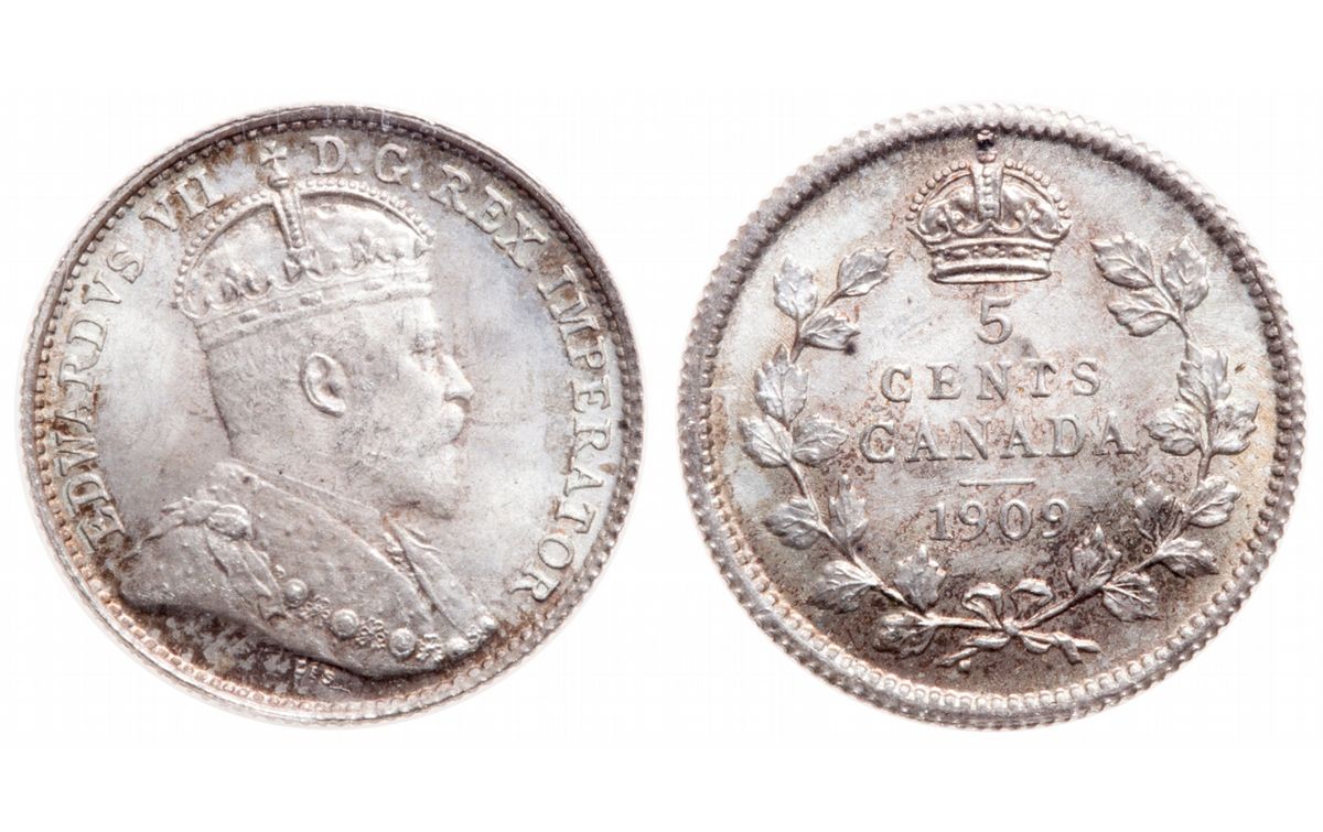Five Cents. 1909. Round Leaves. Bow Tie. ICCS Mint State-65. Light golden toning.