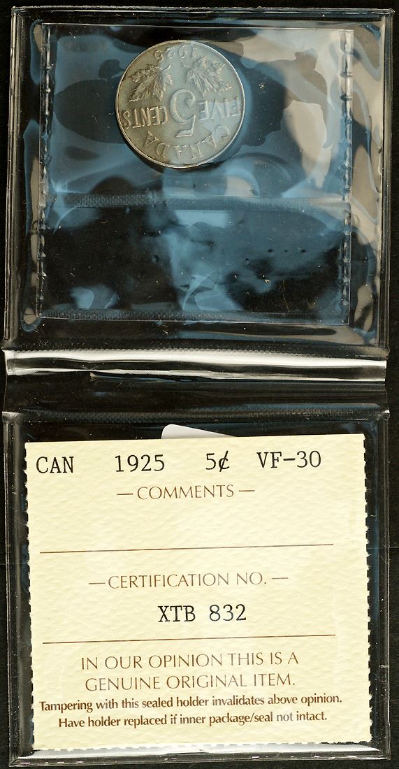 1925, graded by ICCS VF-30. Some remaining lustre.