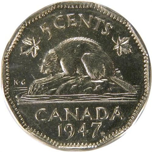 Canada Five Cents 1947 Maple Leaf ICCS SP-64 Lacquered