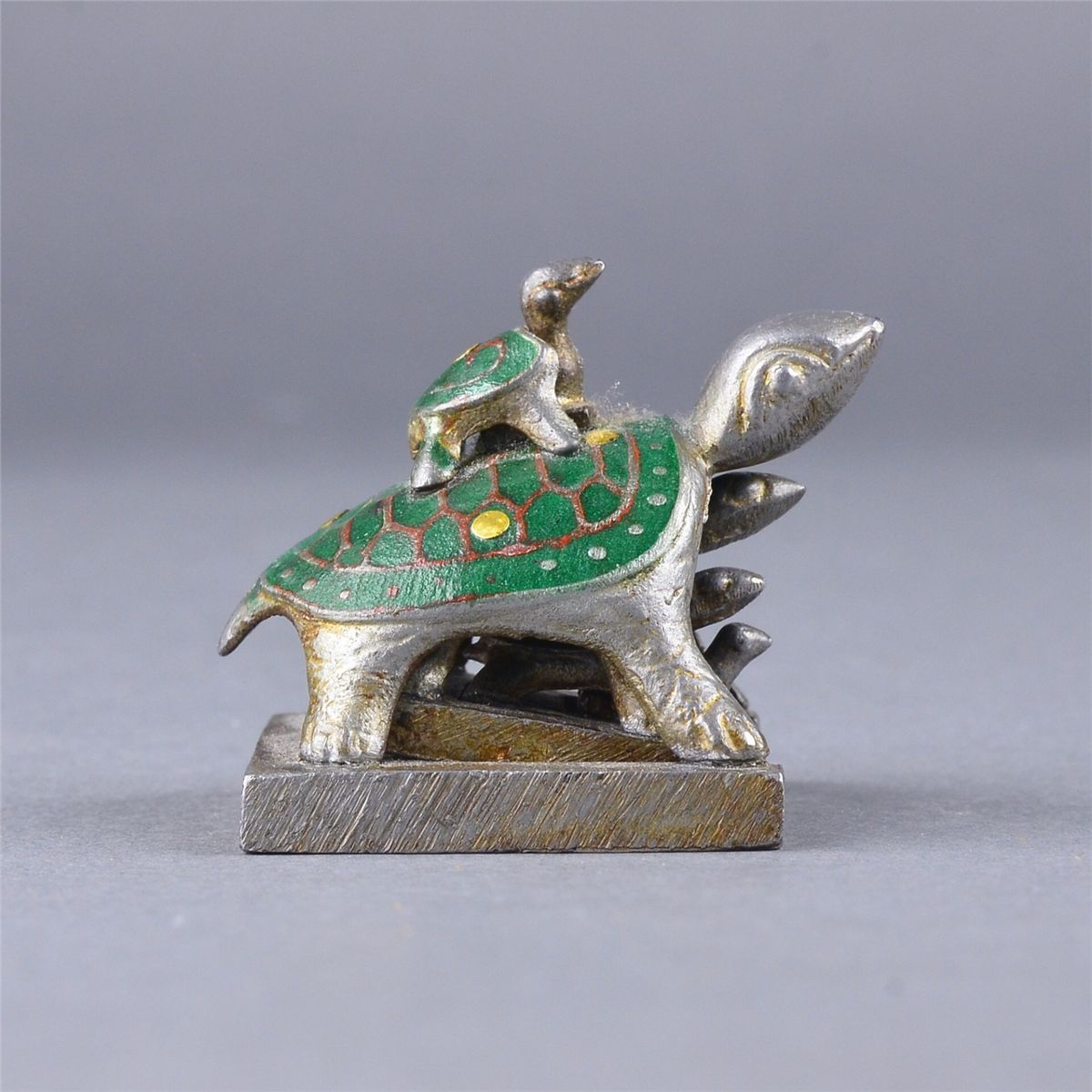 Five Chinese bronze seals; in form of turtles; six-character seal chop carved on base; L: 4 cm, W: 4 cm, H: 4 cm, 164 grams
