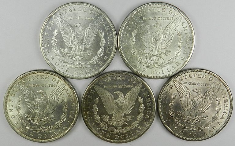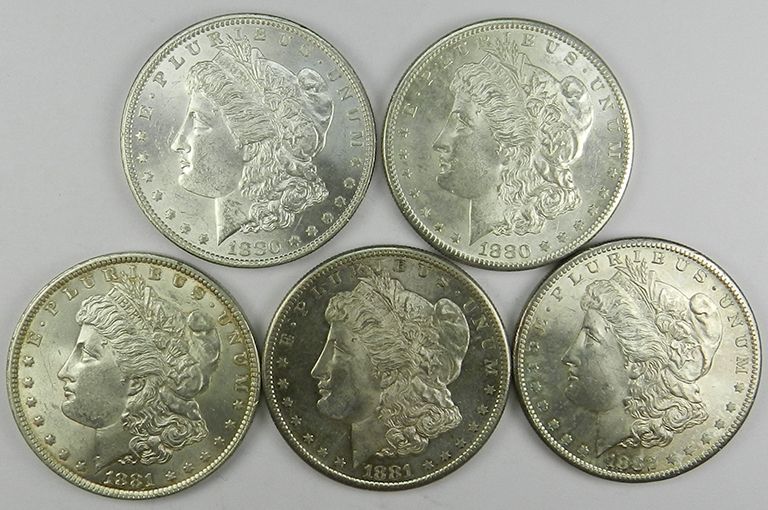 1880, 1880-S, 1881, 1881-S and 1882-S. Avg Choice AU-Unc to Unc, the 1881-S with traces of lacquer. 5 coins.