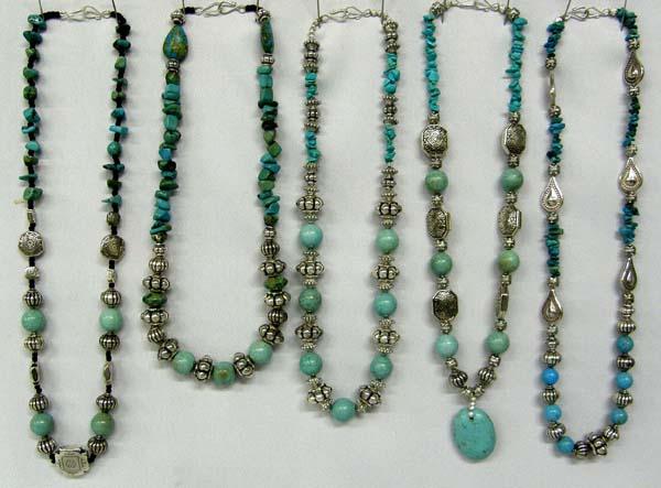 Five Costume Turquoise Necklaces. Nugget Turquoise and Chinese Turquoise, metal is not Silver. The longest necklace measures approx. 26''. SHI $15.