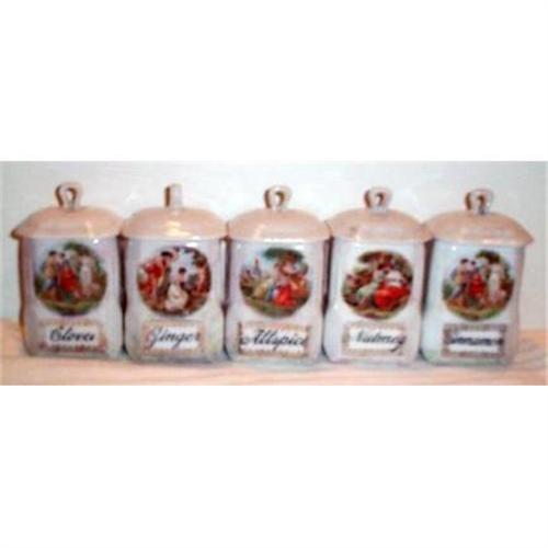 <tr><td>Title:Five Czech Romantic Scene Spice Canisters</td></tr>