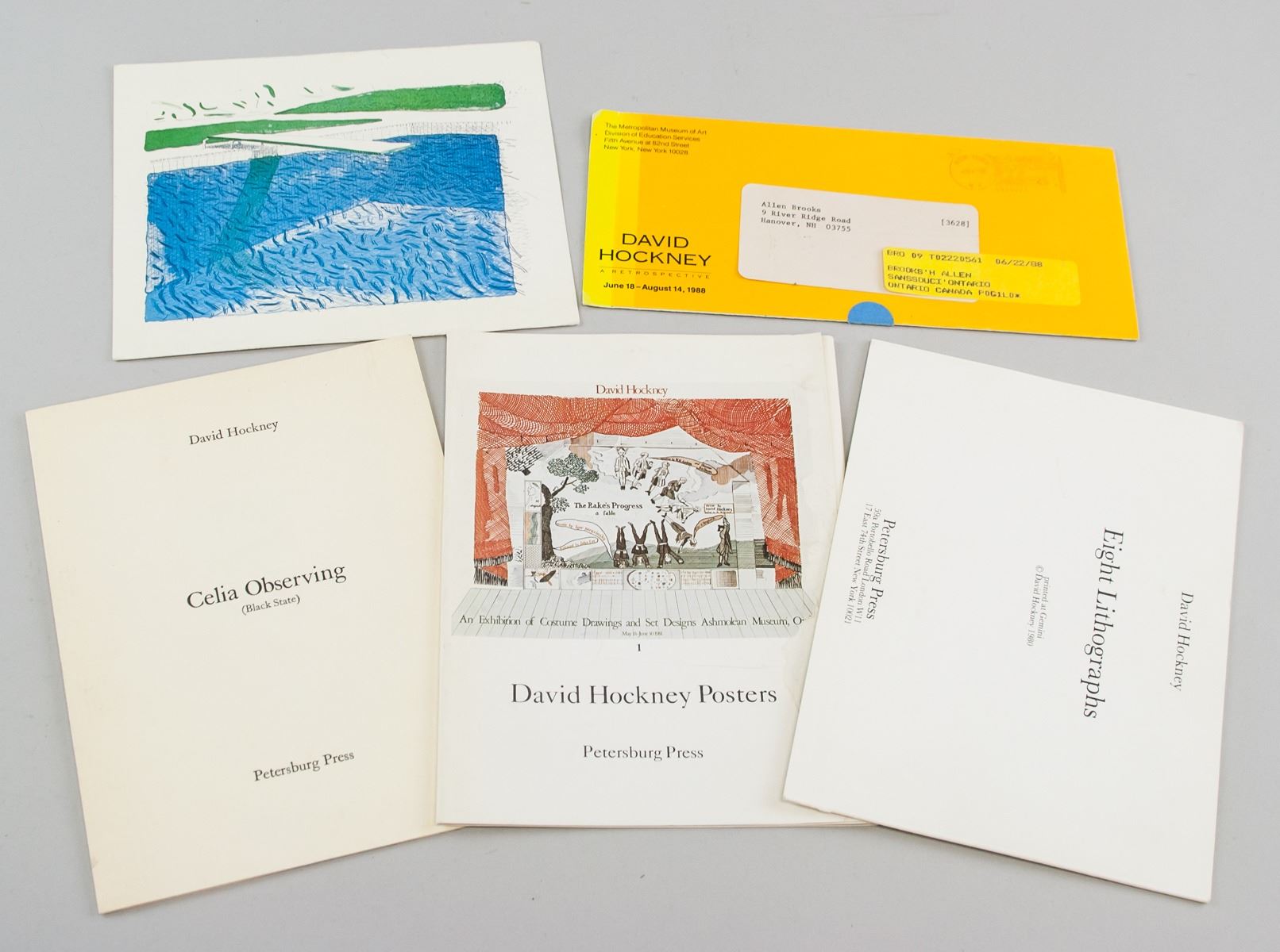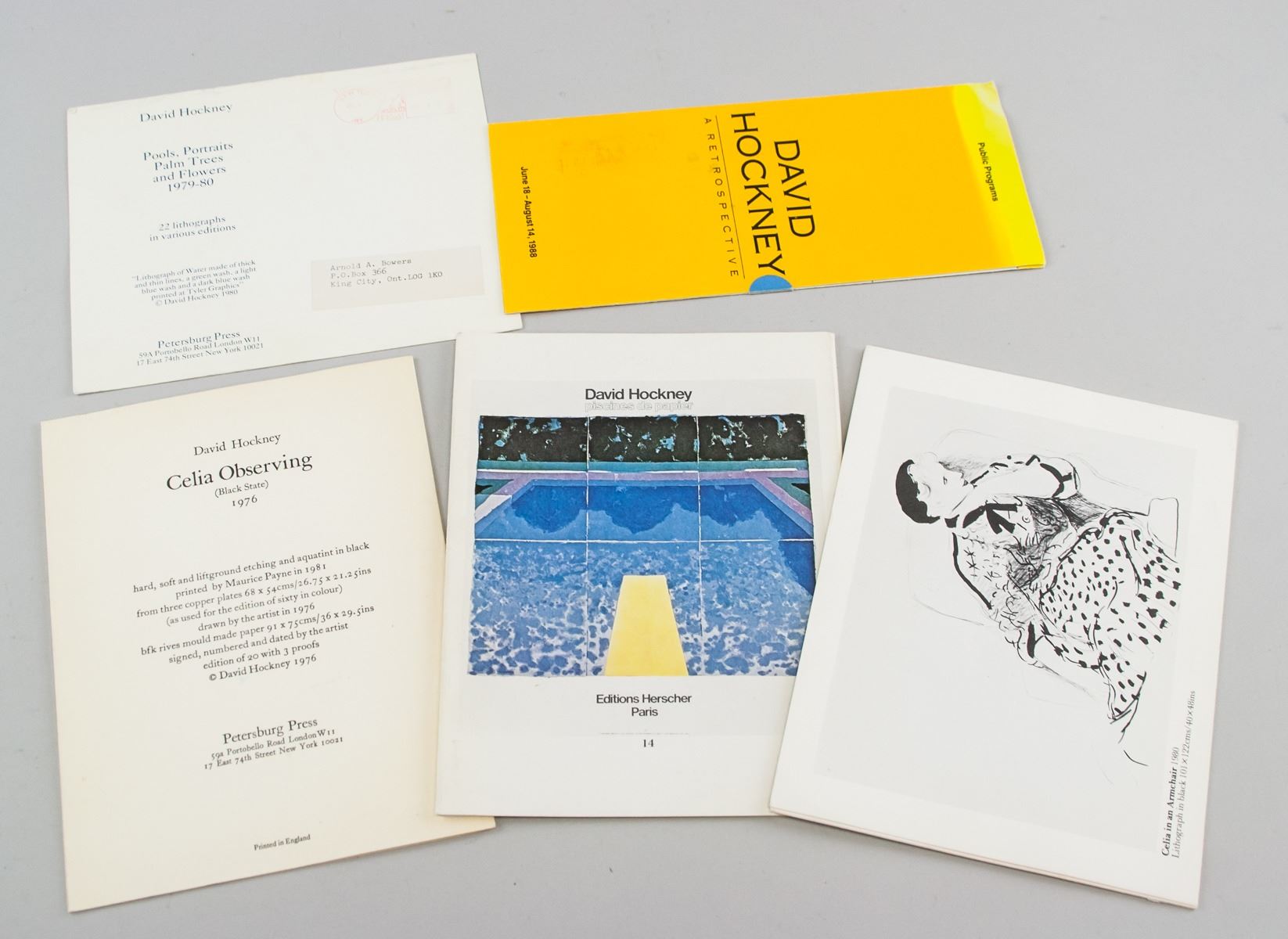 Lot of 5 David Hockney pamphlets. Including catalogs of his work and brochures. 20 x 16 cm.