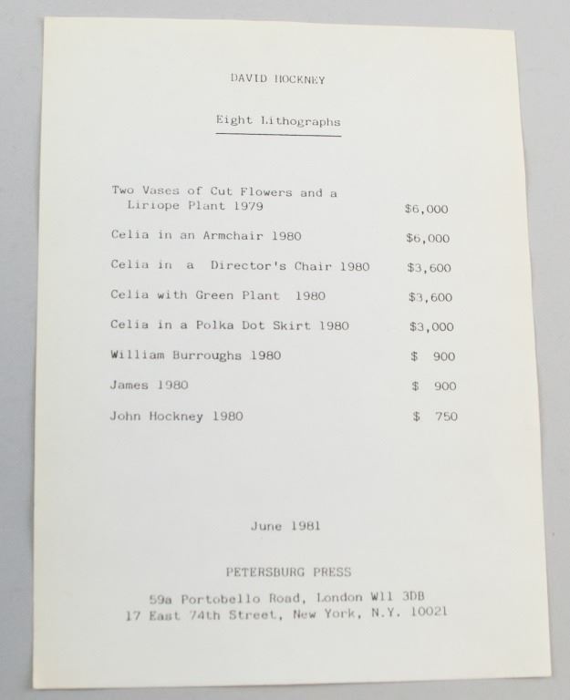 Lot of five (5) David Hockney pamphlets. Including catalogs of his work and brochures. 20 x 16 cm.