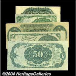 Five Different Types. Fr. 1255 Choice New, Fr. 1264 Choice New, Fr. 1331 Very Fine, Fr. 1376 Extremely Fine and Fr. 1381 Choice New. 5 notes <BR><BR><B>Important notice:</B> Heritage usually auctions material at the rate of 200-250 lots per hour. On some occasions eBay Live bid software or the Internet may not be able to keep up with the pace of the auction. We recommend placing a realistic absentee bid now as insurance to avoid disappointment. Occasionally the auctioneer may eliminate or reject an eBay Live bid, and the auctioneer may also reopen a lot after the close of the eBay live bidding (usually because we missed an audience bid), and may reject your bid even if it shows you as the winning bidder. By bidding via eBay Live, you agree that Heritage may award the lot to another bidder at its sole discretion under the circumstances described above or any other reasonable circumstances. Since eBay bids are not shown to us until we open the lot on the floor, we treat those bids just like floor bids. In most cases the floor responds before the eBay bid is presented to us, due to Internet lag time, so for consistency we have made it a policy that floor bids are always considered first over tie eBay live bids. Also please note that all Heritage lots purchased through eBay Live carry a 20% Buyer's Premium. Please make sure you read the Terms and Conditions before you bid. <BR><BR><B>IMPORTANT ANNOUNCEMENT ABOUT RESERVES:</B> Heritage now divulges all reserves on its web site 7 days before every auction. If you want to know whether the reserve on this lot has been met, and if not, what the reserve amount is, please visit this lot page on the HeritageCoin.com web site, or email: bid@HeritageGalleries.com