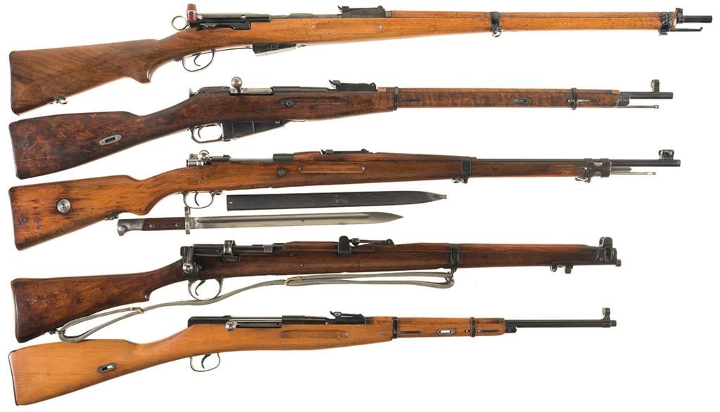 Five European Bolt Action Rifles -A) Swiss Model 1911 Straight Pull Rifle