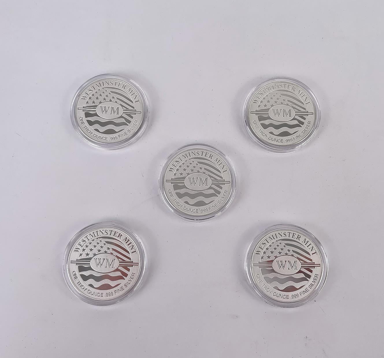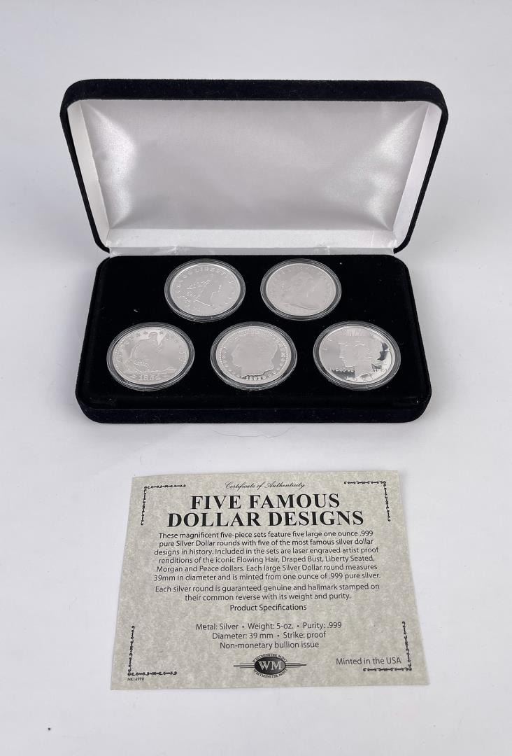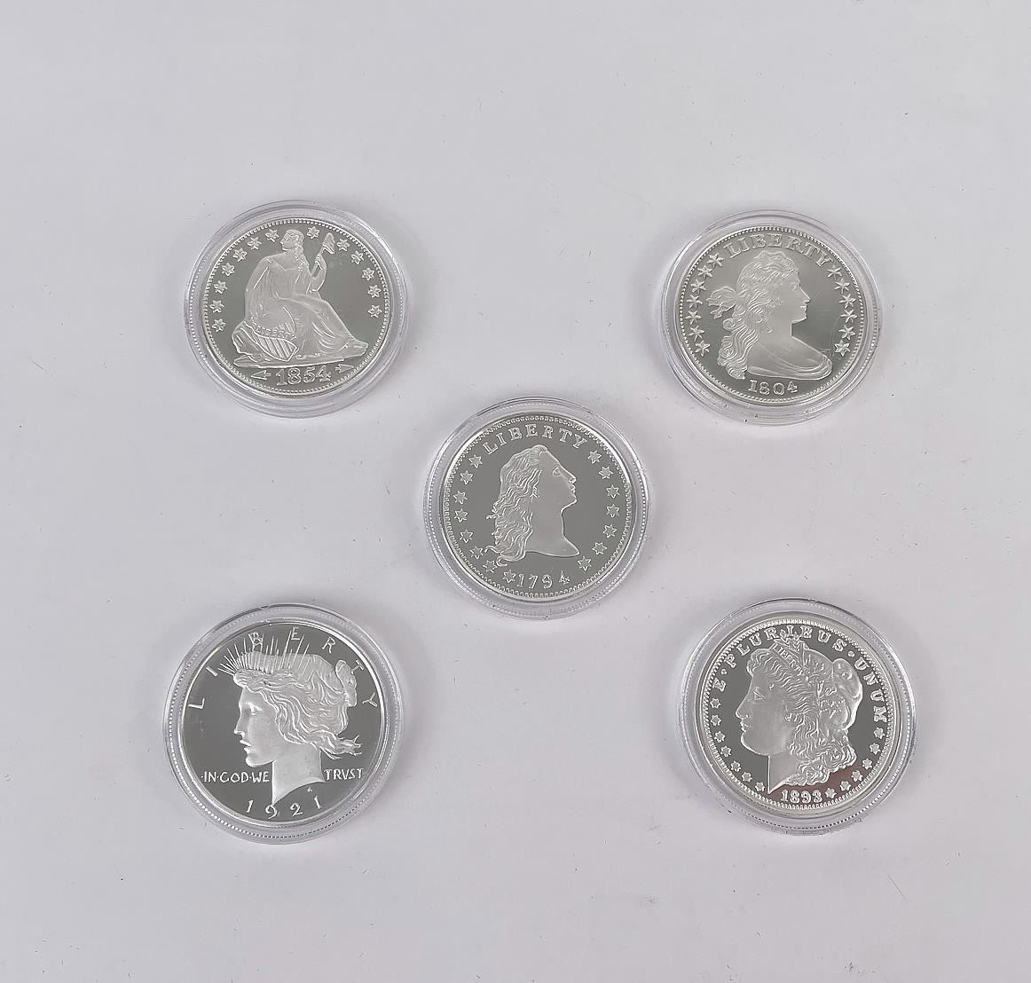 five piece set - 1794, 1804, 1854, 1893, 1921 silver dollar year. 5 Troy Ounces of Silver