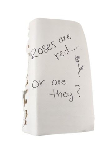 Stella (Haley Lu Richardson) backup, handwritten note with "Roses are Red or Are They?". (approx. 6" x 4") Condition may vary slightly.