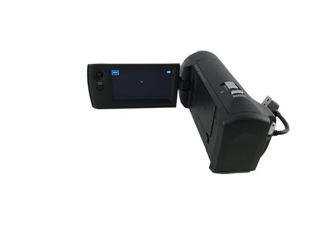 Stella (Haley Lu Richardson) screen used, hero, black "Sony HDR-CX405 Handycam" camcorder with power cords and black stand. (approx. 6" x 3 1/2")