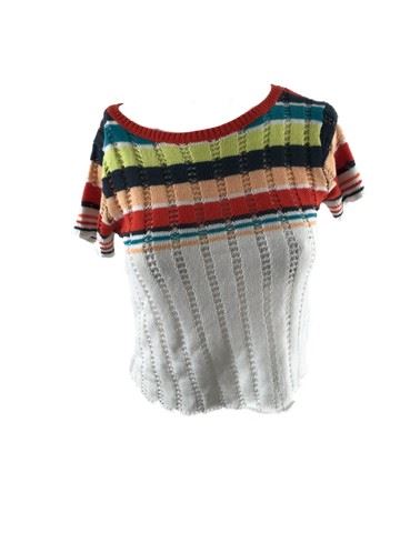 Stella (Haley Lu Richardson) screen worn, hero, colorful striped crochet short sleeve 'Urban Outfitters' top, (size S) Includes wardrobe tag.