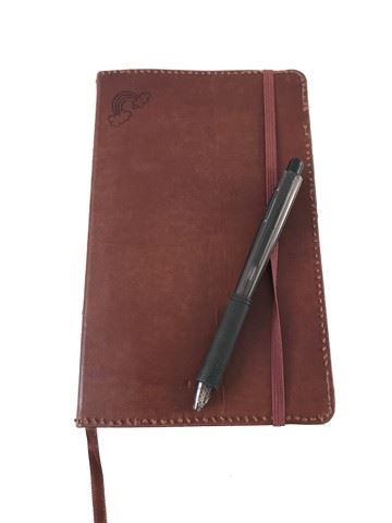 Stella (Haley Lu Richardson) screen used, hero, dark brown leather bonded leather with rainbow design on the front notebook with to-do list written inside and pen. (approx. 8 1/2" x 5 1/2")