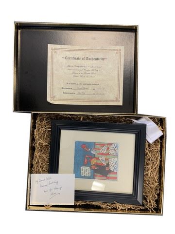 Will's (Cole Sprouse) screen used, hero birthday present from Meredith (Claire Forlani) in a gold foil box with a framed political cartoon and a note that says: "My Dearest Will Happy Birthday Love You Always Mom". Inside box cover includes a faux copy of a certificate of authenticity for the cartoon.