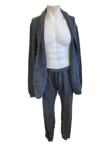 Will (Cole Sprouse) screen worn, blue/grey heather, wool "ASOS" sweater (size L), washed, dark grey "Charles & A Half" joggers (size L), and grey knit scarf. Wardrobe tags included. Worn in several scenes of the film.