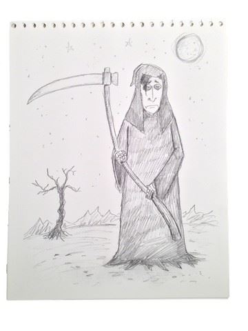 Will (Cole Sprouse) screen used, hero, hand drawn sketch of the "Grim Reaper" Will draws this after learning about Stella's condition.(11x14)