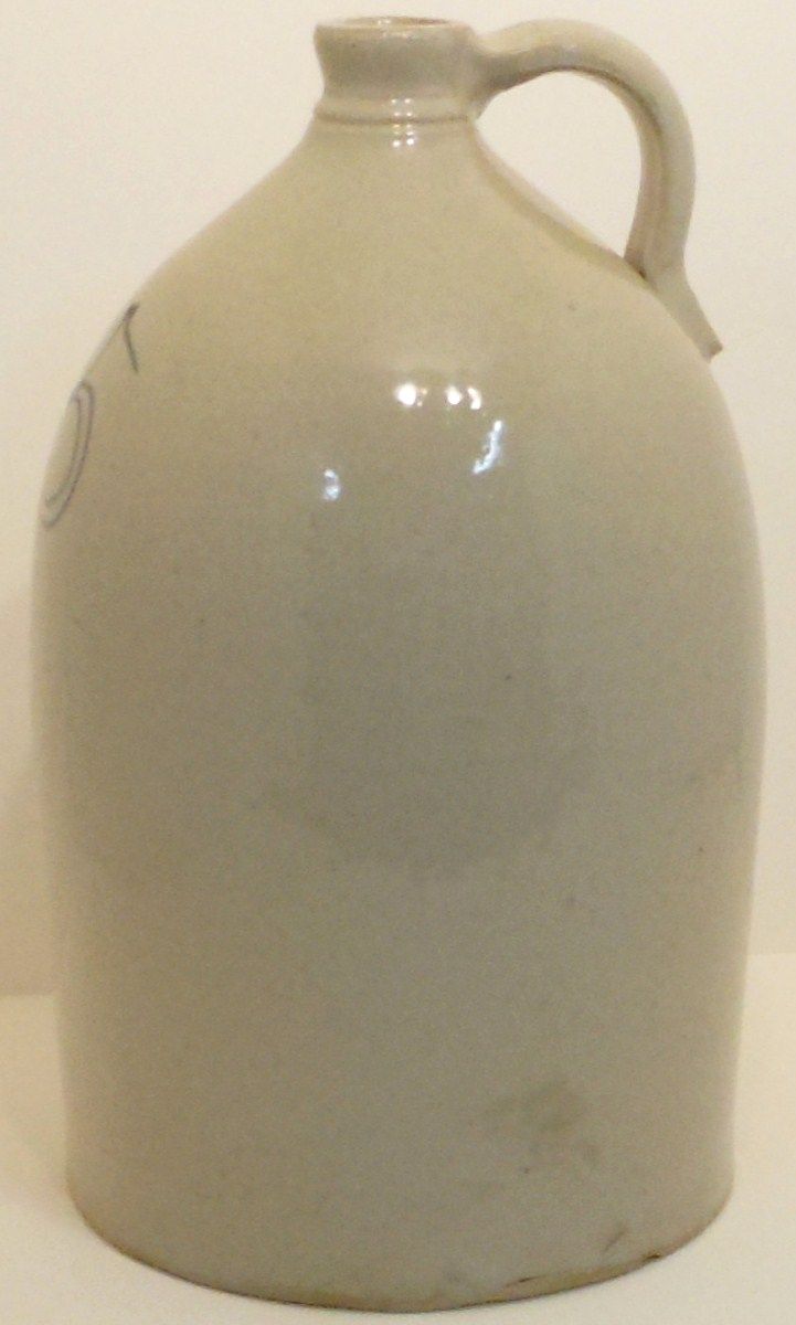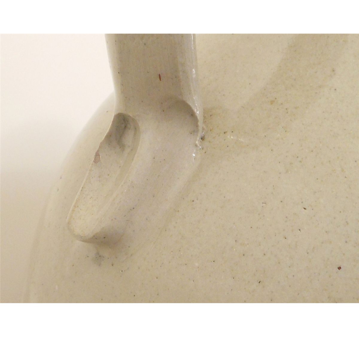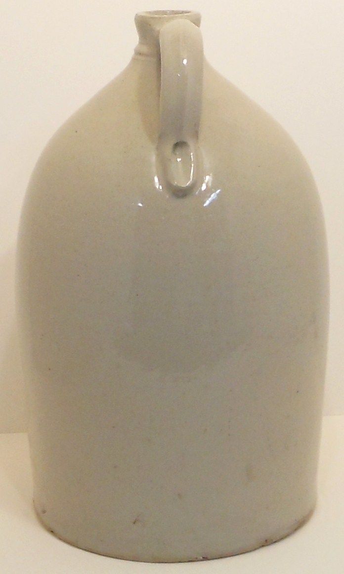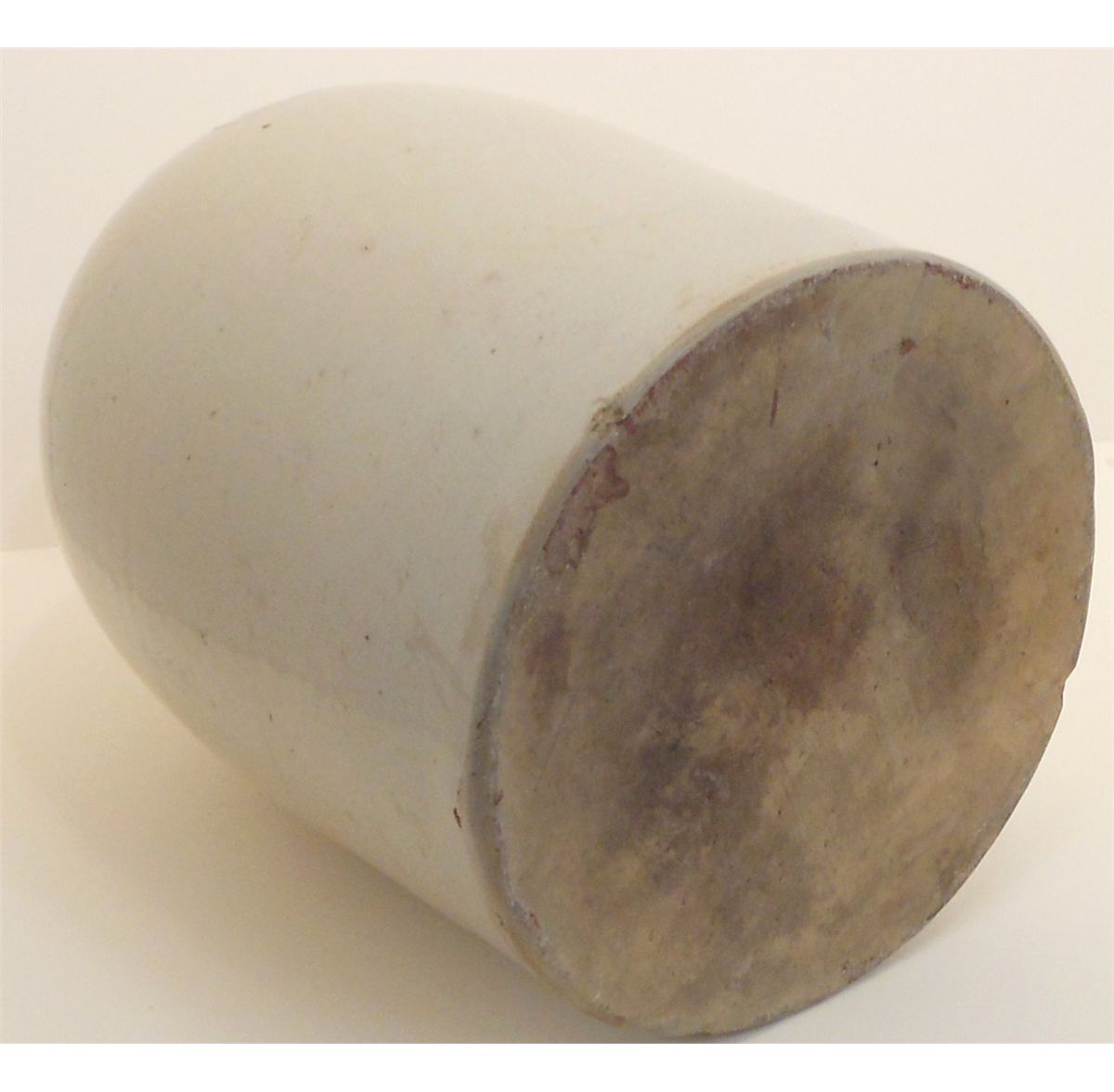 19" tall x 11 1/2" diameter, high gloss zinc glaze, marked "5", strap handle. Excellent condition with a few small basal chips.