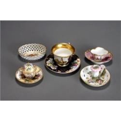 Five German Porcelain Cabinet Articles, Mid-19th-Early 20th Century, The first, a Berlin cup...