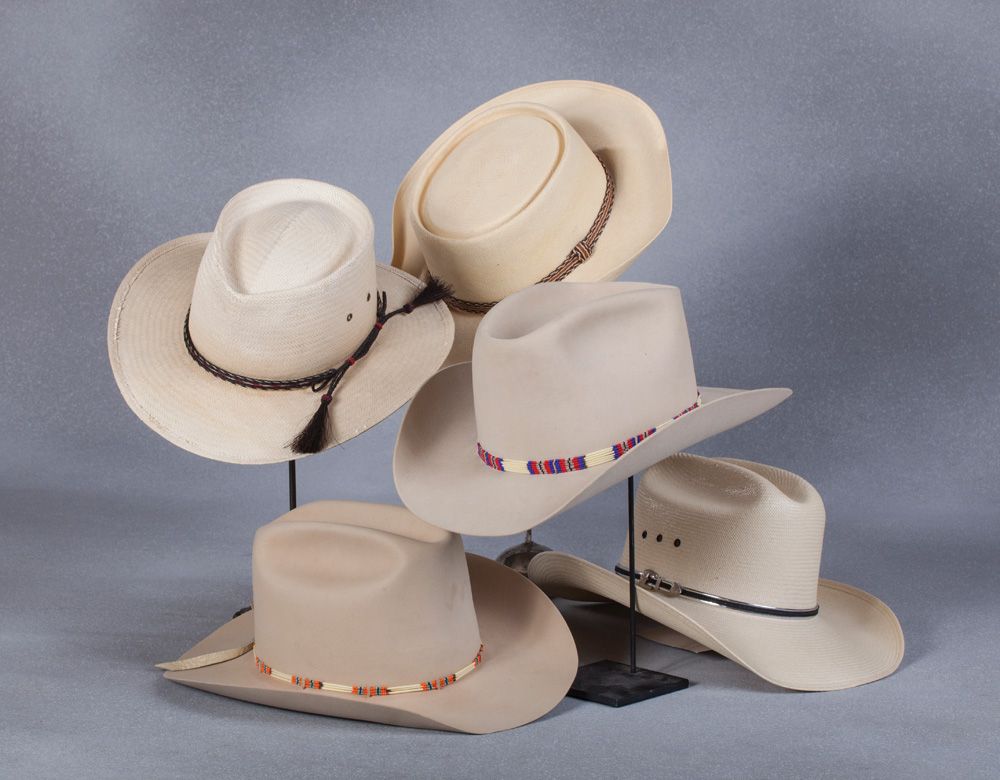 Five Hats Belonging to Harry Carey, Jr. Lot of 5 classic cowboy hats:. a) Custom O'Farrell with a quilled hatband, custom made for Harry Carey; b) 10X Stetson with quilled band; c-e) Three (3) quality straws. PROVENANCE: Carey Family Trust