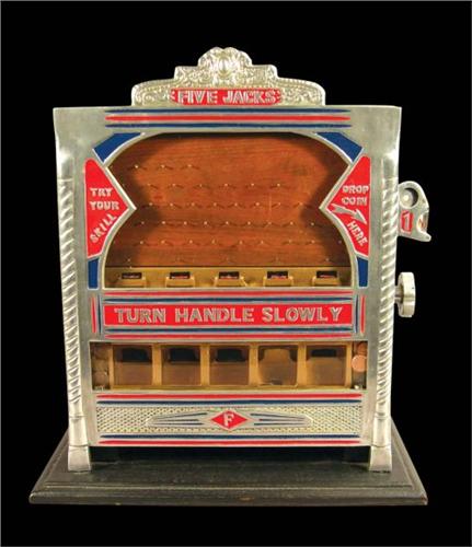 5 Jacks Coin Operated Trade Stimulator. Excellent condition with key. 16 X 18 X 10 inches.