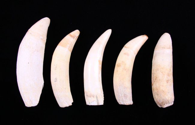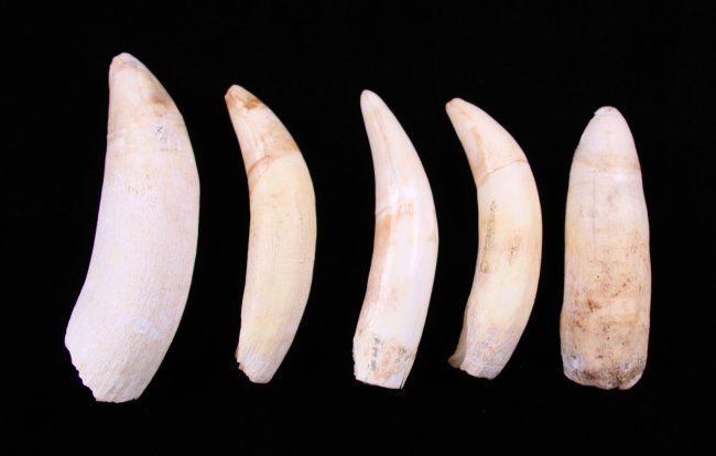 Five Large Alligator Teeth. (Size: See last photo for measurement.)