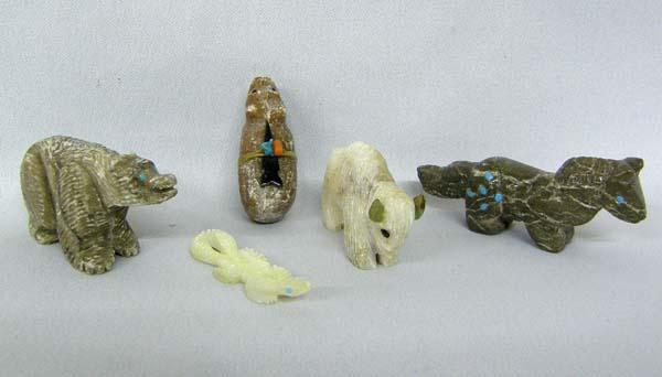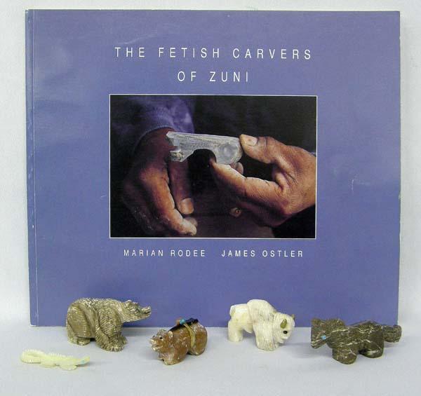 Five Native American Zuni Fetish plus Book. The book, softback, measures approx. 9''Hx10.5''W. The largest fetish measures approx. 1.25''Hx2.5''L. Buyers Pay Actual Shipping and Handling Charges(see terms and conditions for more information).