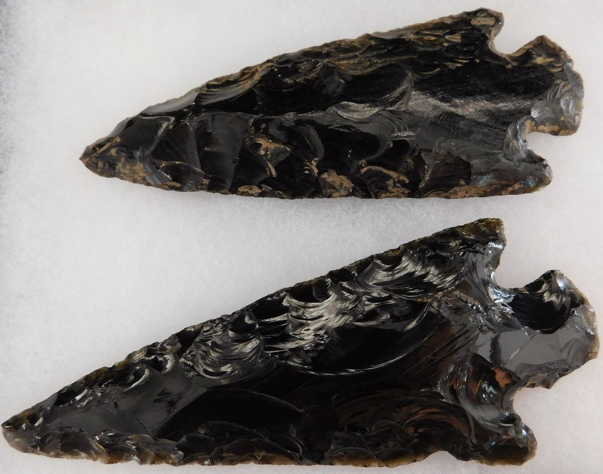 These items are as found with minor nicks and chips. See images. Items are obsidian and measures 3.5 x 6 inches long and believed to be from Central Mexico. Shipping: $16.50