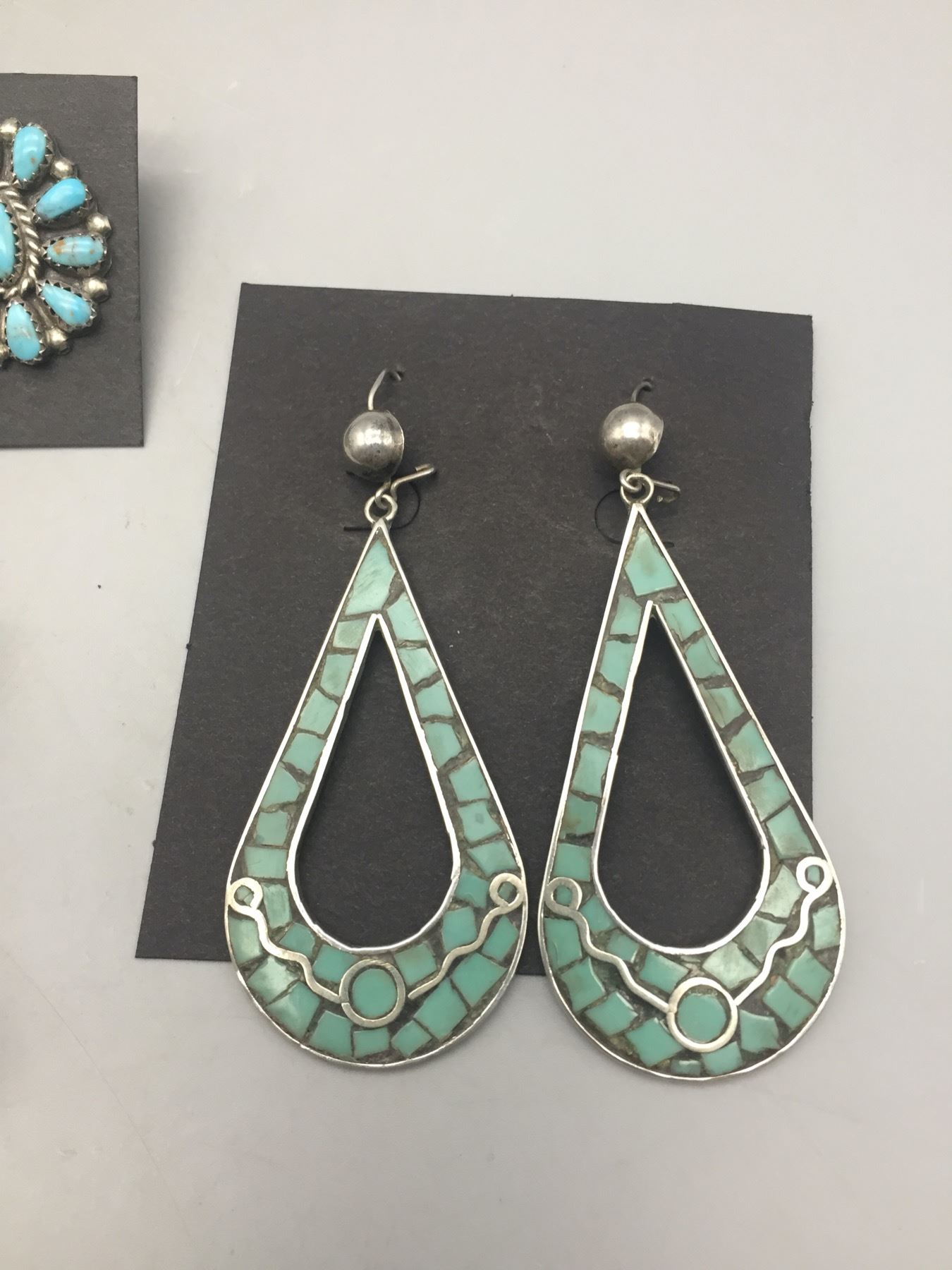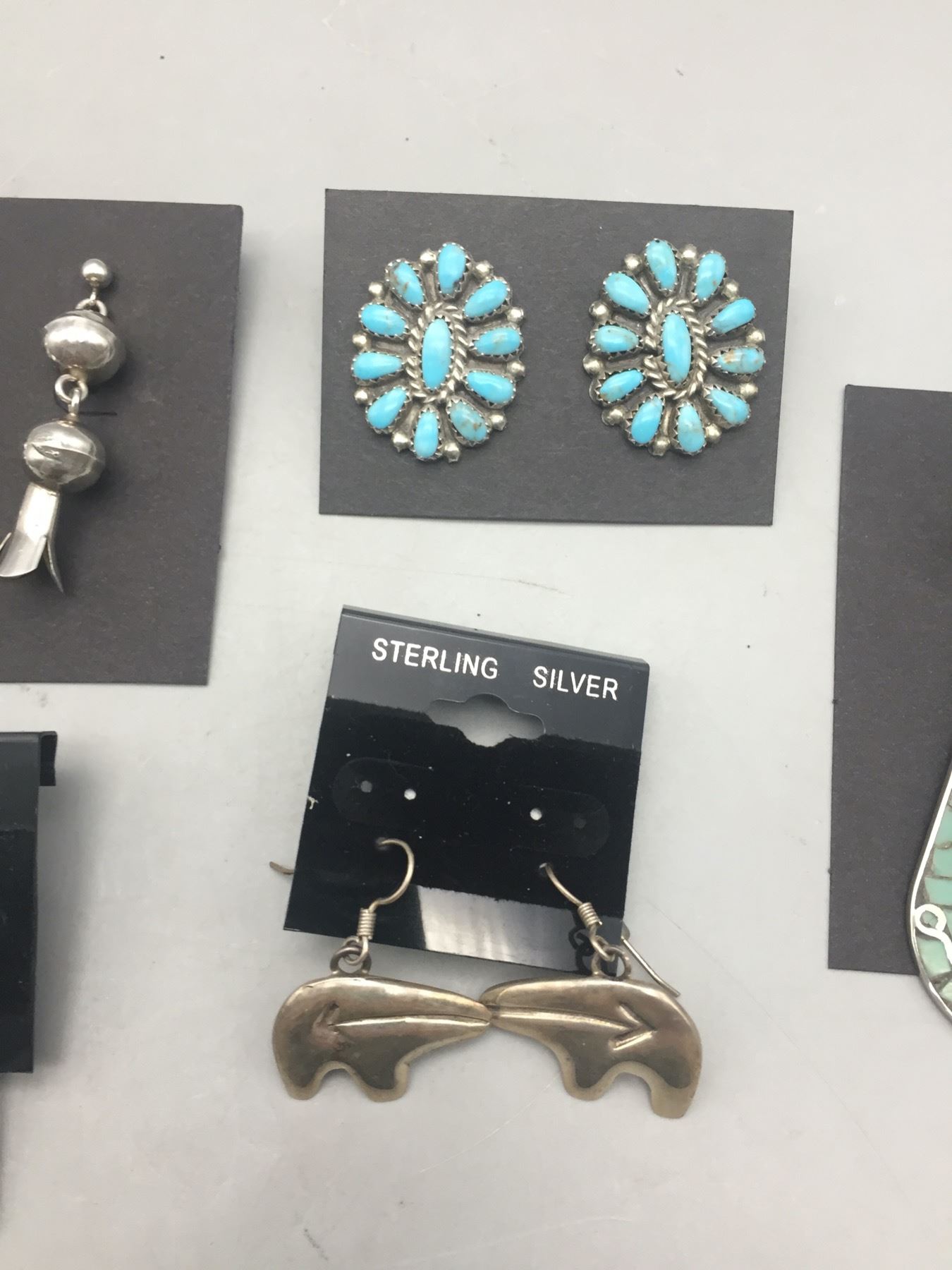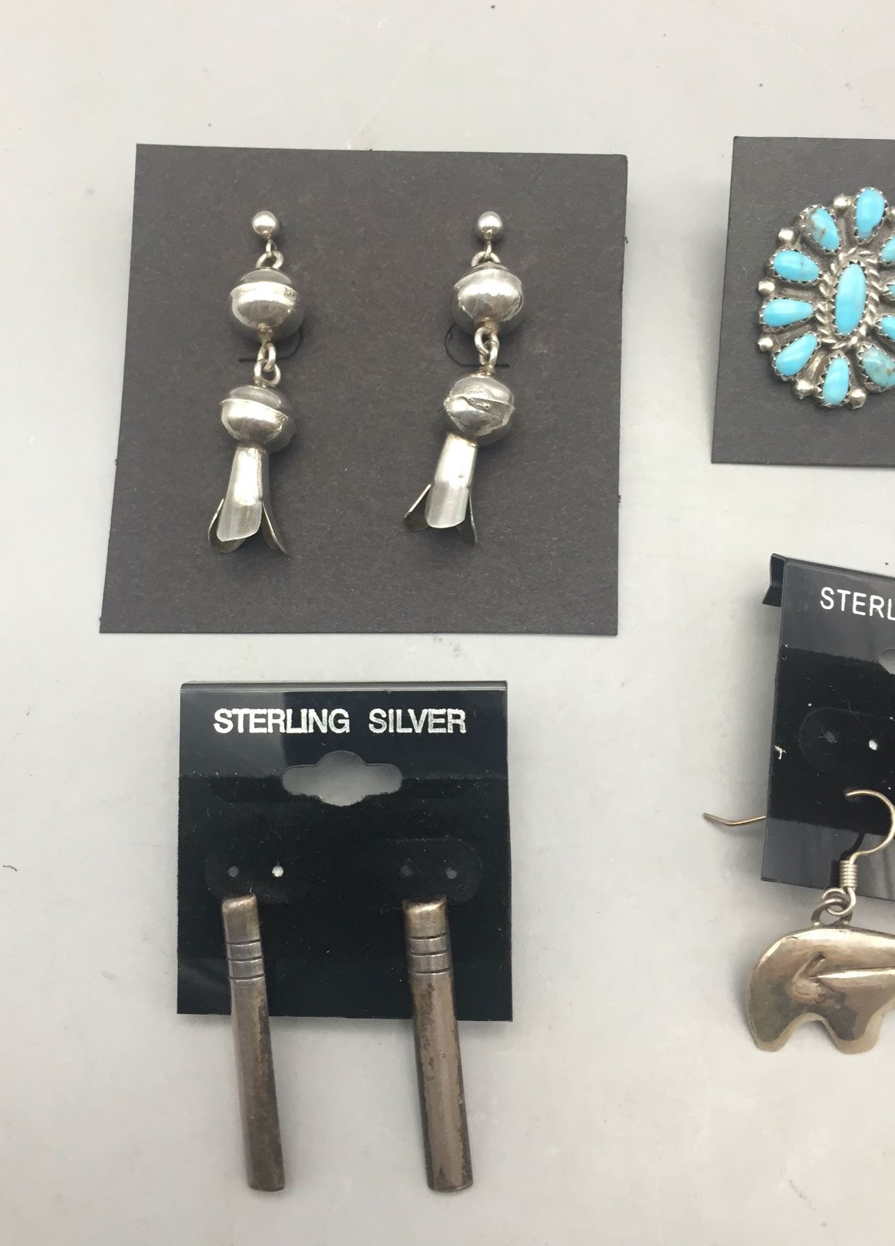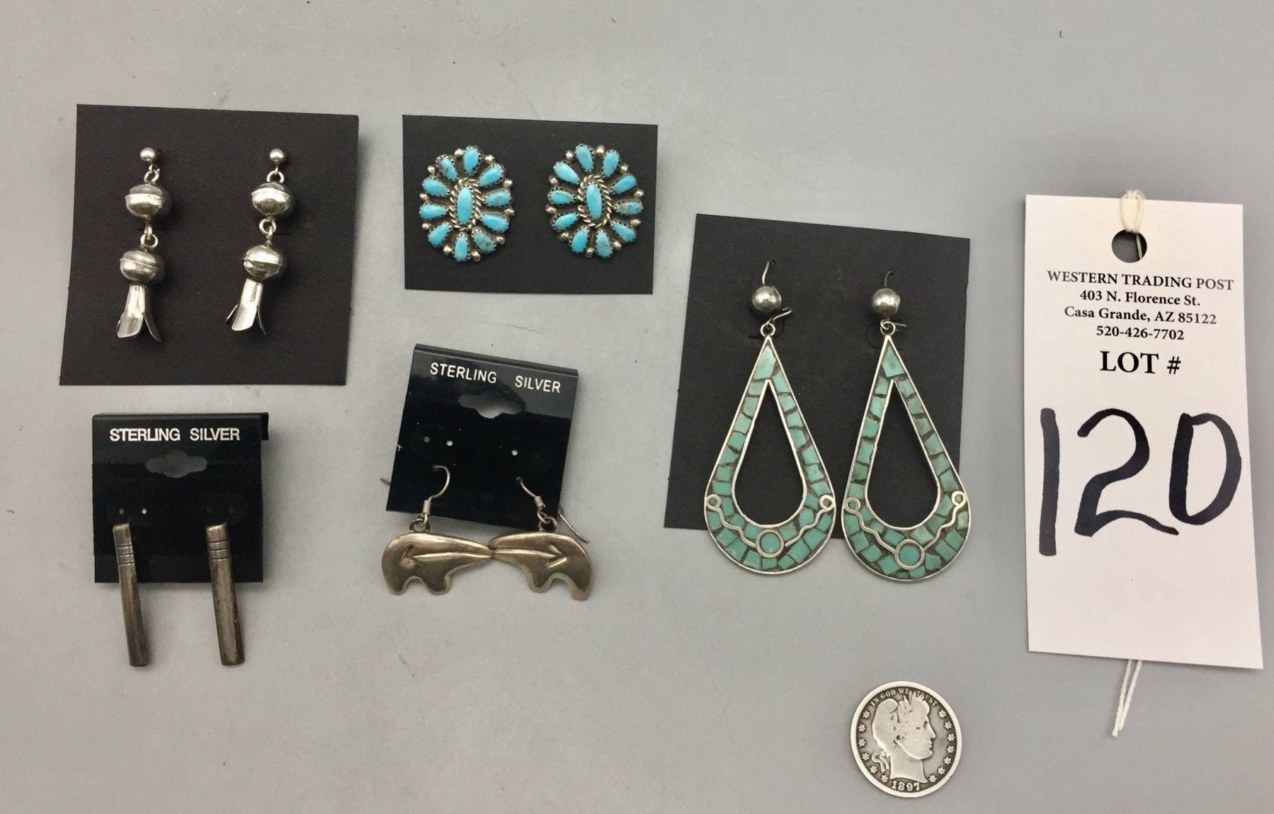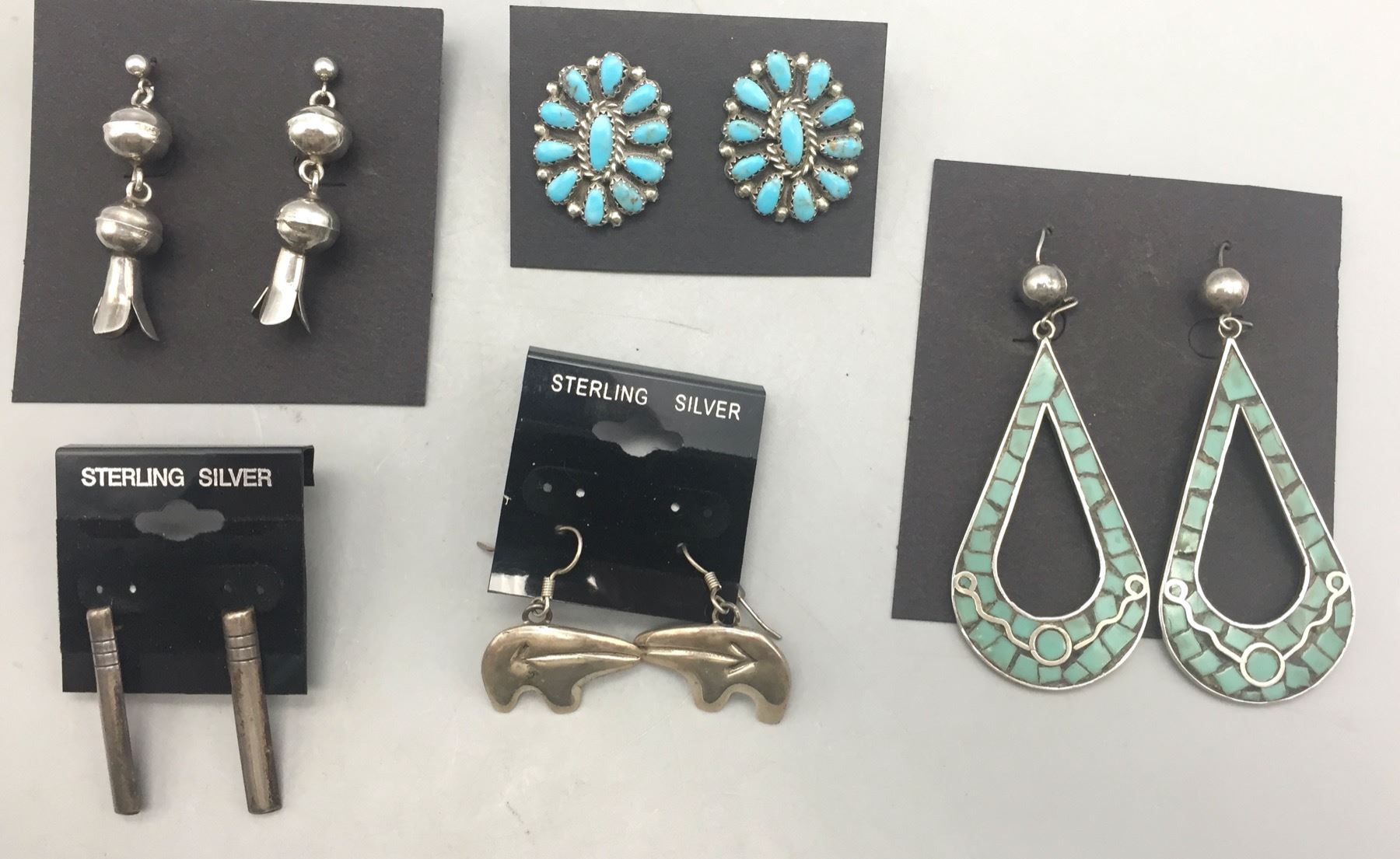 Description: Offered for sale in this lot is a group of five pairs of nice earrings. All are sterling silver, set with various stones. Maker: Various. Approx. Age: Vintage. Size:Various. Combined weight is 47.5 grams. Condition: Good for their age, normal wear expected. Please look closely at the pictures - they are an important part of our description. Shipping: There will be a $5 handling / packaging fee for shipping this lot. The actual cost of postage will be added on top of that.