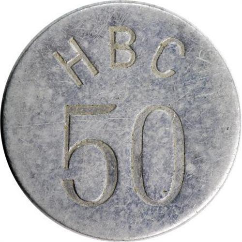 <B>Five-Piece Set of Canadian Arctic Tokens.</B></I> Aluminum, 19-mm to 40-mm uniface tokens issued by the oldest department store still in business today, opened for business in 1670. The tokens in this lot were in use in the Eastern Canadian Arctic from the middle '40s through the early part of the '60s. The denominations are 5, 10, 25, 50, and 1.00, and all have the letters HBC (Hudson Bay Company) and the denomination incused. The tokens are listed in the standard reference catalog, <I>Medals, Tokens, and Paper Money of the Hudson's Bay Company</B></I> by Larry Gingras. The catalog numbers are 285, 285a, 285b, 285c, and 285d.<BR><BR><b>Shipping:</b> Coins & Currency (<a target="_blank" href="http://www.heritageauctions.com/common/shipping.php">view shipping information</a>)