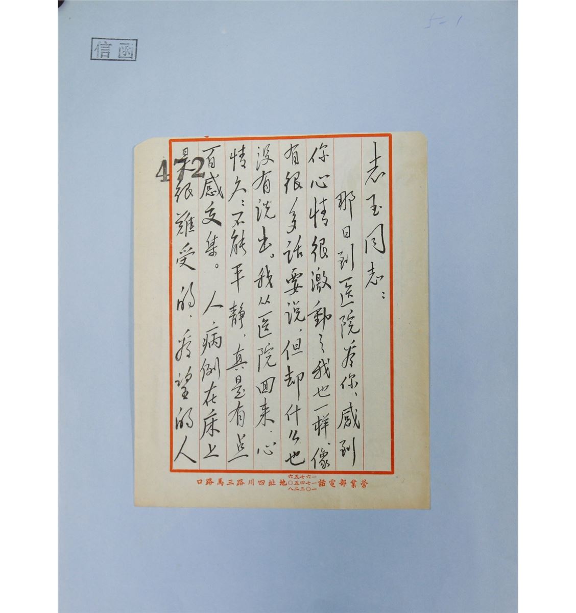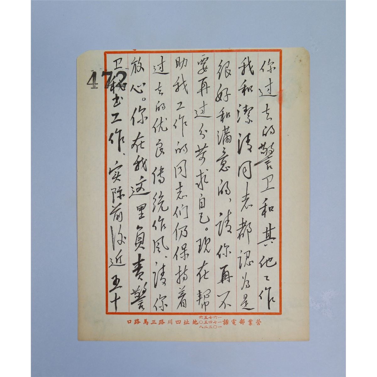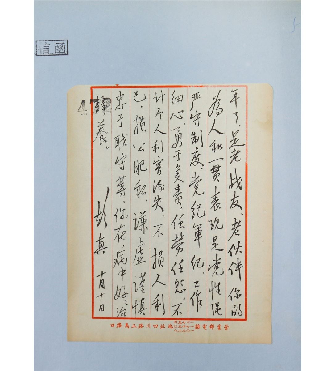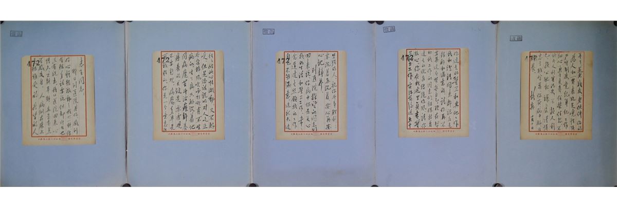Five pieces of Letters by Peng Zhen; mounted on blue paper; Chinese ink on paper; 44 cm x 32 cm each